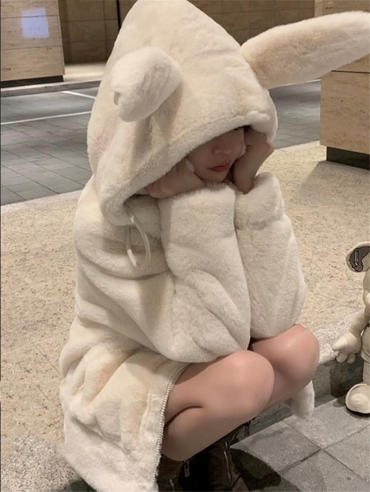 フェイクファー コート うさぎの耳デザイン 動く耳 厚手 可愛い sweet 系 韓国ファッション 用EC655