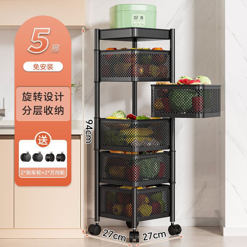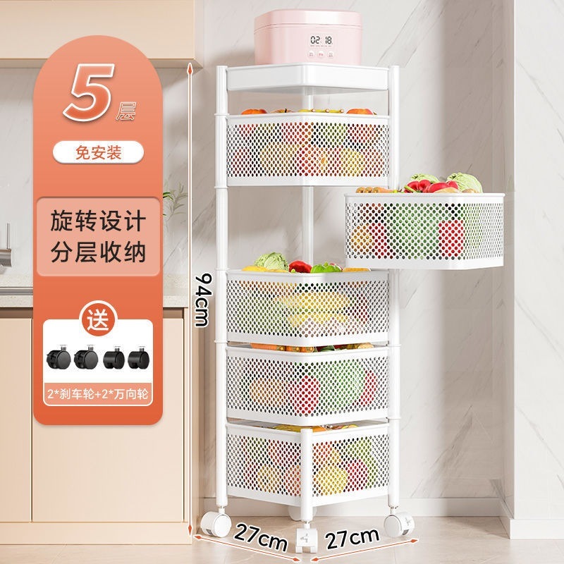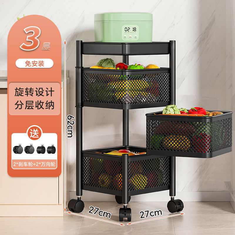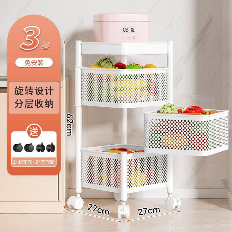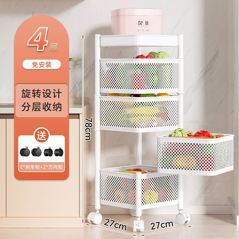 物置棚多層収納棚キッチン回転多機能果物野菜バスケット床置き家庭用スナックカート
