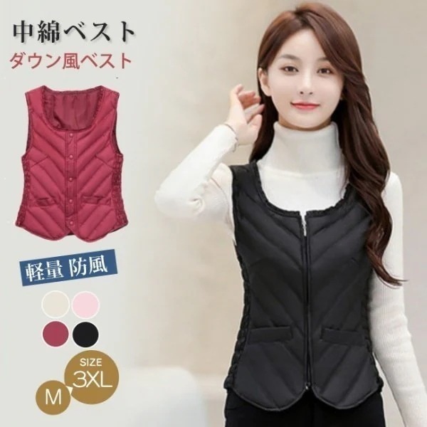 2025 ダウンベスト レディース トップス ノースリーブ スリム ショート 防寒 暖かい 大きいサイズ
