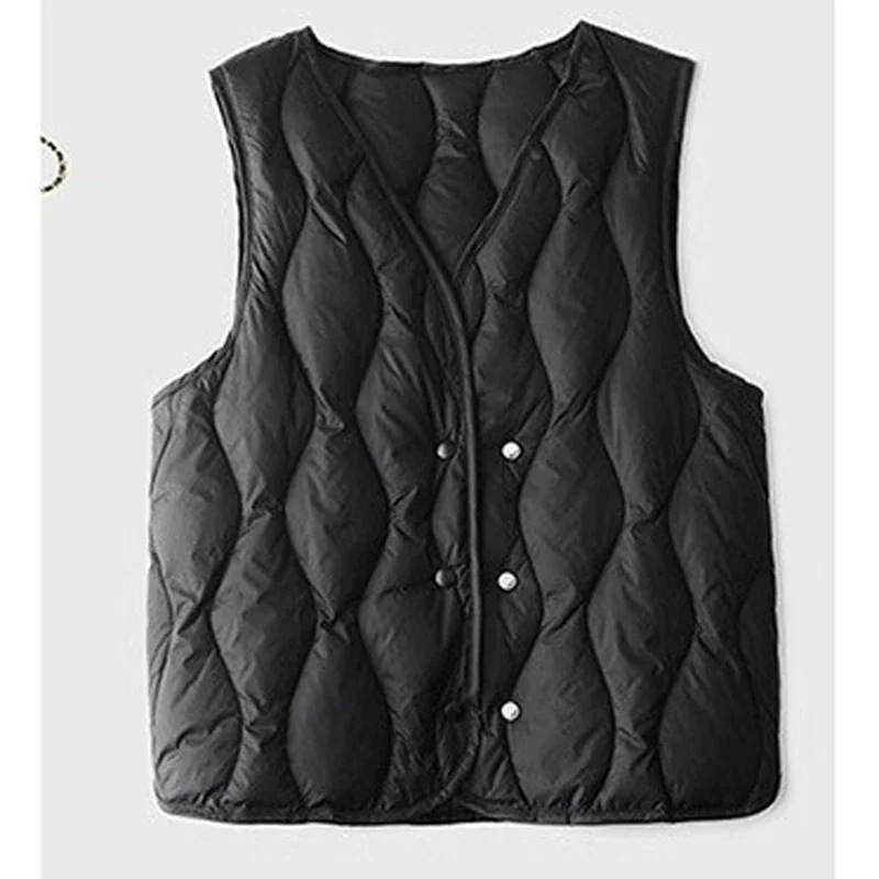 中綿ベストとのレディースベストライト薄いインナーウェア暖かいベストスリムショートセクションVネックベストの肩