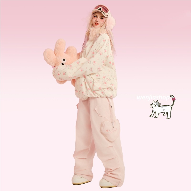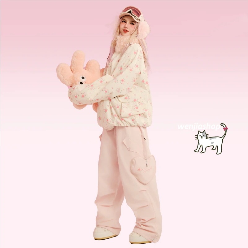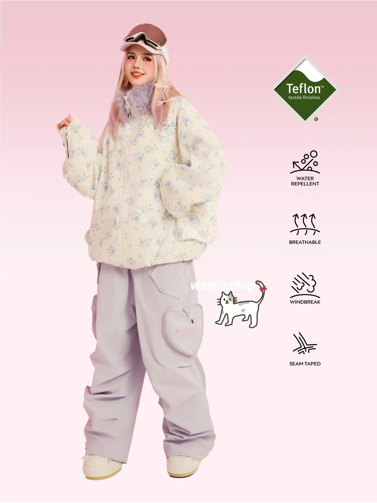 スノーボードウェア 2026 上下セット 耐水圧20000 メンズ レディース ジャケット パンツ ズボン もこもこネック 小花 ハート柄ポケット 3L裏起毛スノボウェア スノーウェア スキーウェア
