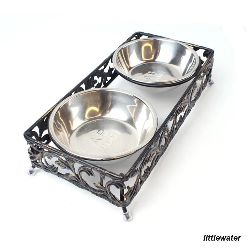 食器 フードボウル 犬 猫 ドッグ キャット 2個 ボウル ペット用品 ペットグッズ 水入れ 餌入れ 餌皿 水皿 アイアンフレーム ステンレス wudamne