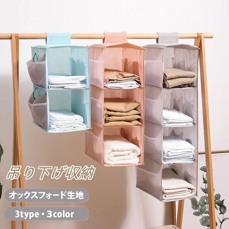 吊り下げ収納 吊り下げ ラック 折りたたみ クローゼット 衣類 2段 3段 4段 ハンガー 収納 カゴ かご 衣類収納 収納ボックス 収納ケース 収納棚 タオル マスク ズボン シャツ 下