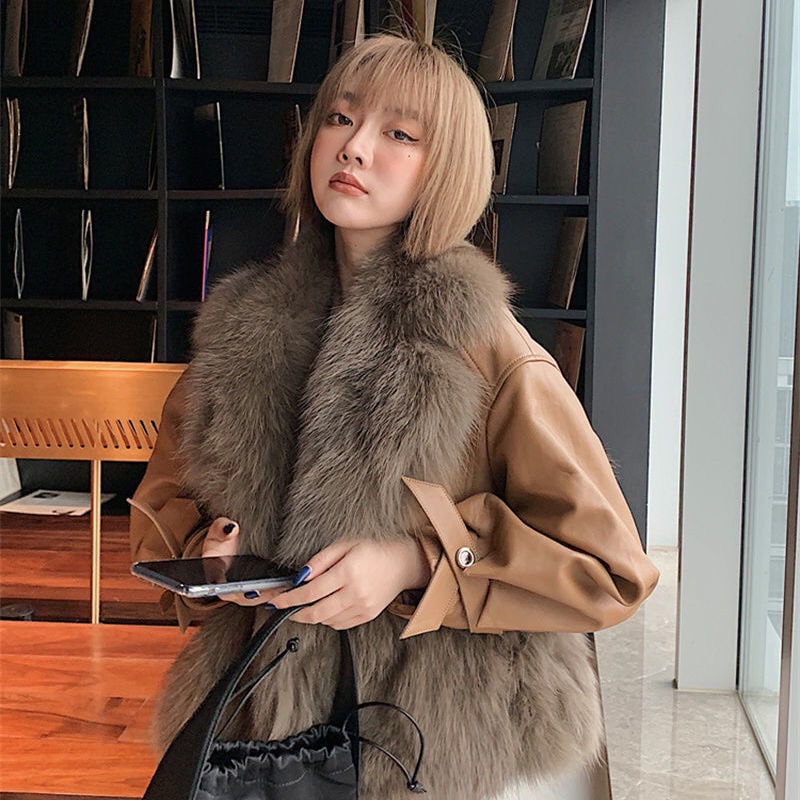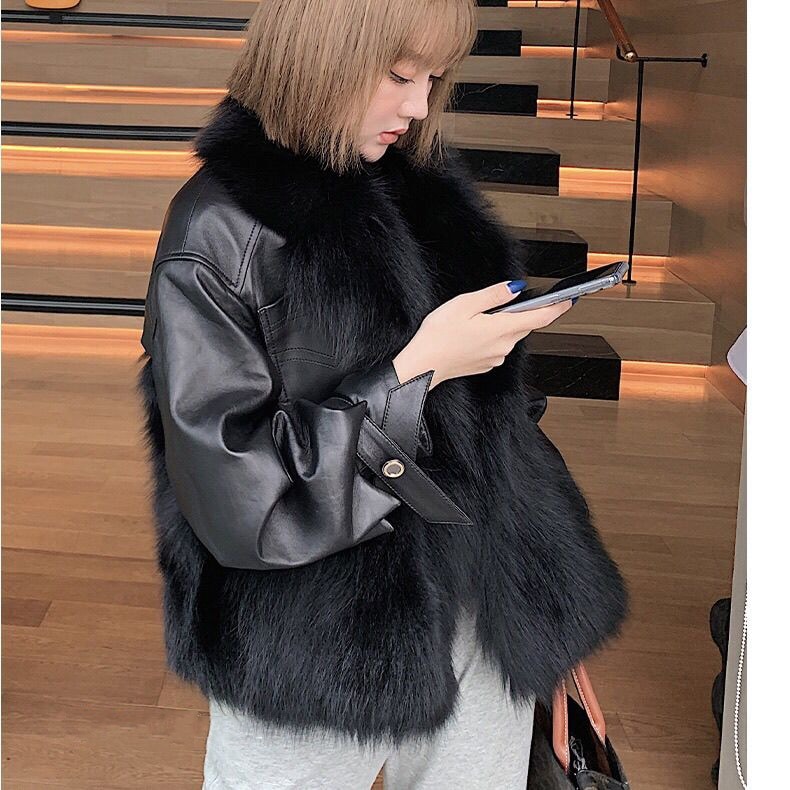 ファージャケット ファッション フェイク キツネの毛 切り替え 毛皮コート アウター ショート丈 レディース