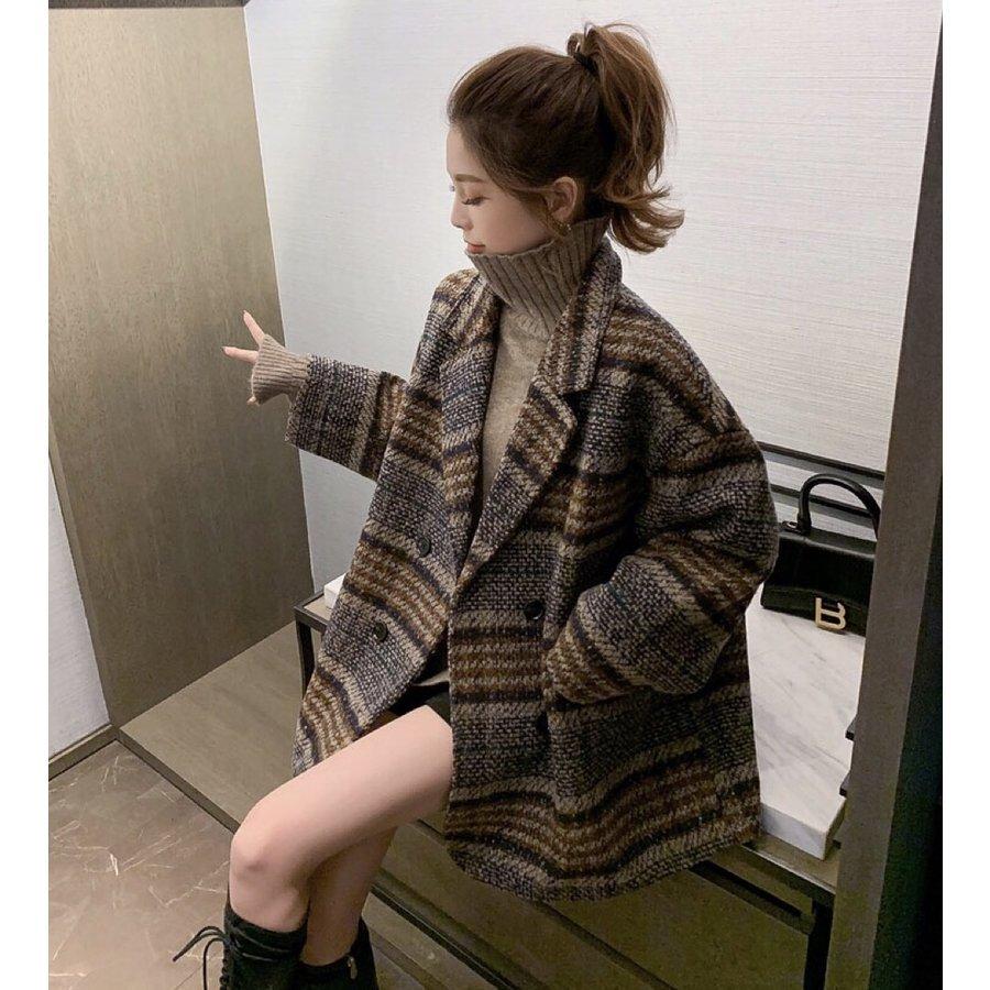 人気沸騰 チェスターコートレディースウールチェックコートロングロングコートポケット付きボーダー40代 50代30代韓国風通勤