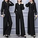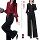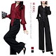 レディース パンツドレス 結婚式 セットアップ 大きいサイズ 長袖 卒業式 体型カバー 2点セット 上下セット vネック きれいめ ワイドルーズ ワイドパンツ 新品 大人気