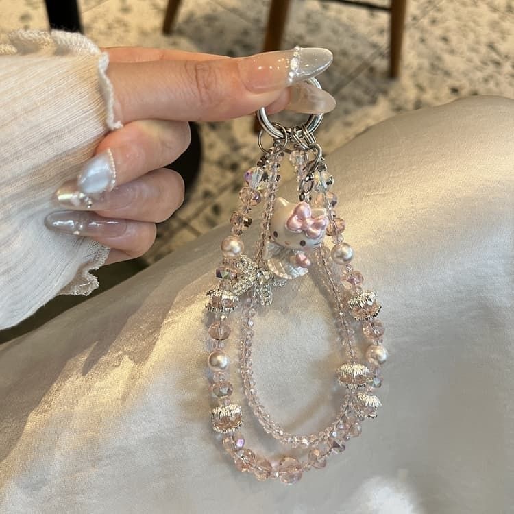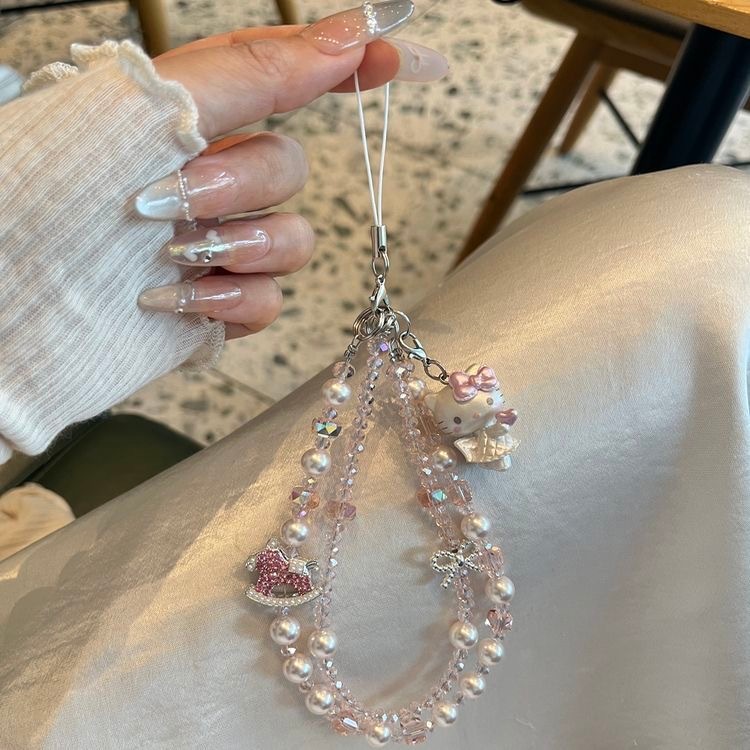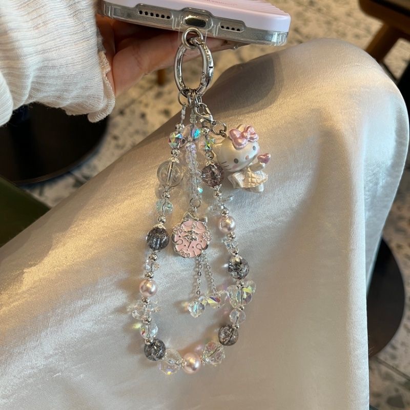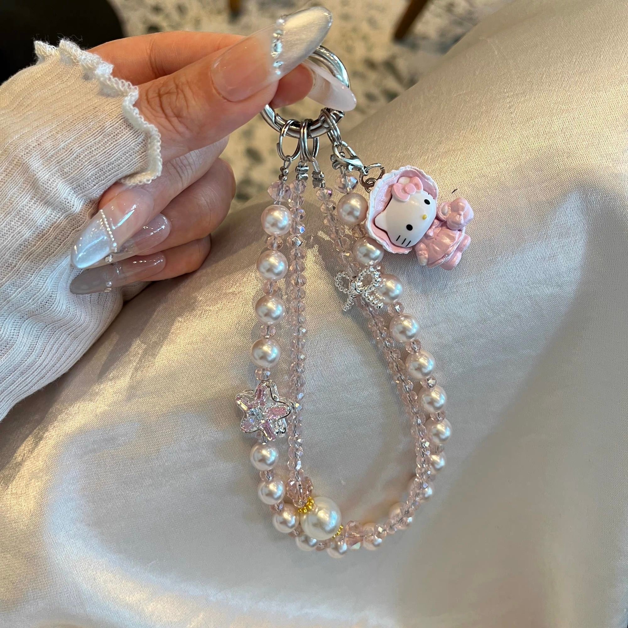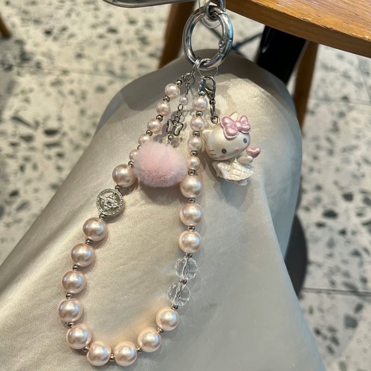 【2026年人気新作】オリジナルデザイン 大真珠 蝶 ファーボール ビーズストラップ ハローキティ スマホチャーム CCD キーホルダー レア 個性的 贈り物