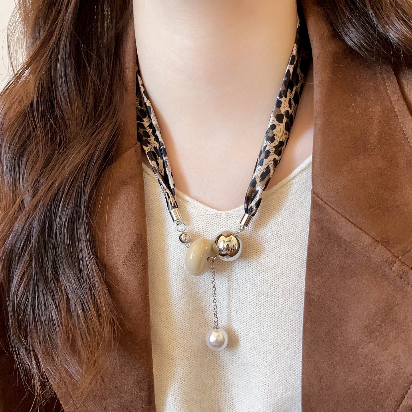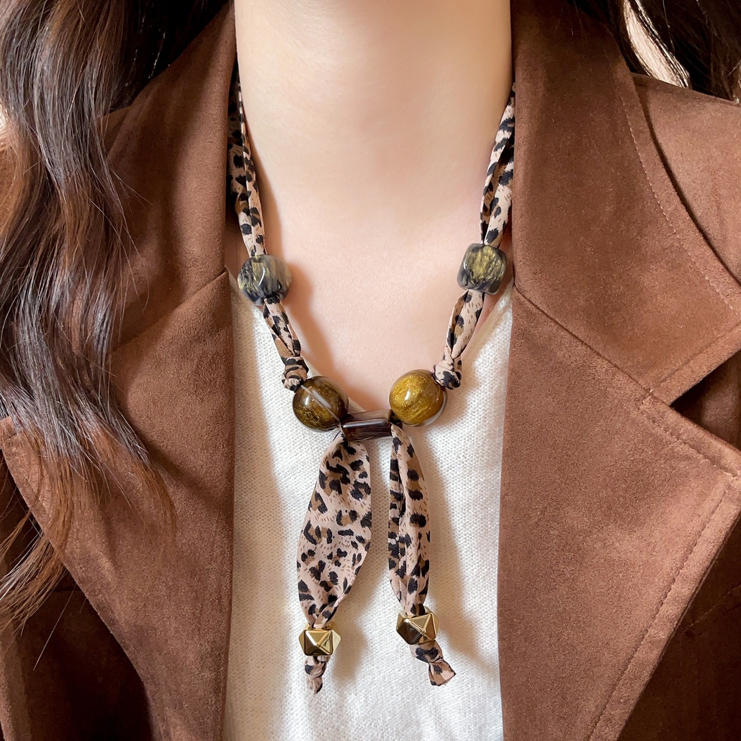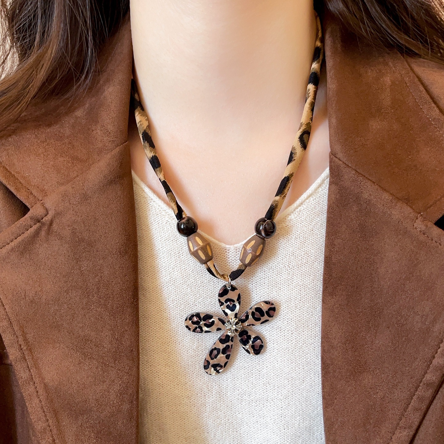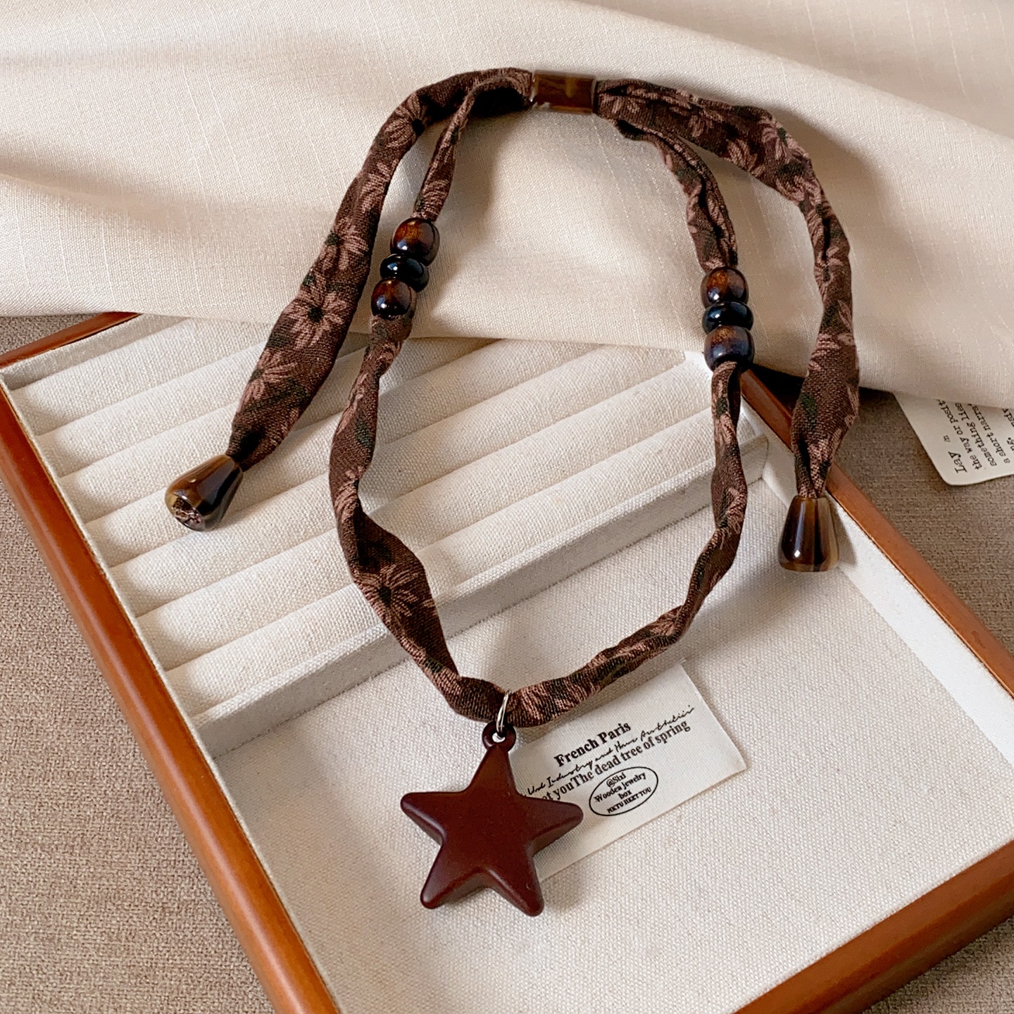 美ラード茶色星ペンダント花柄シルクネックレス女性秋冬高級感セーターチェーン気質軽贅沢アクセサリー