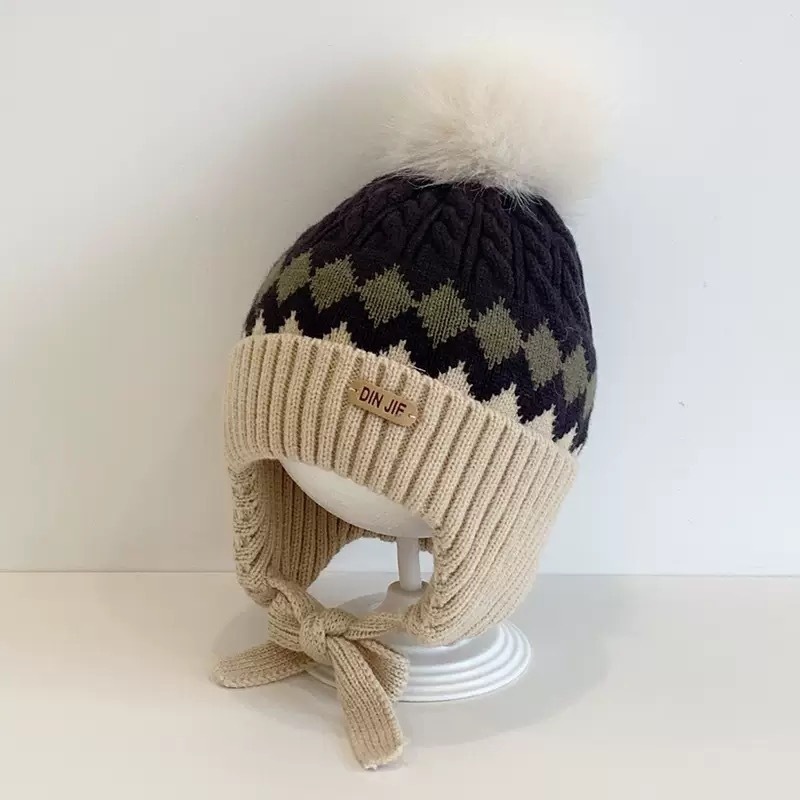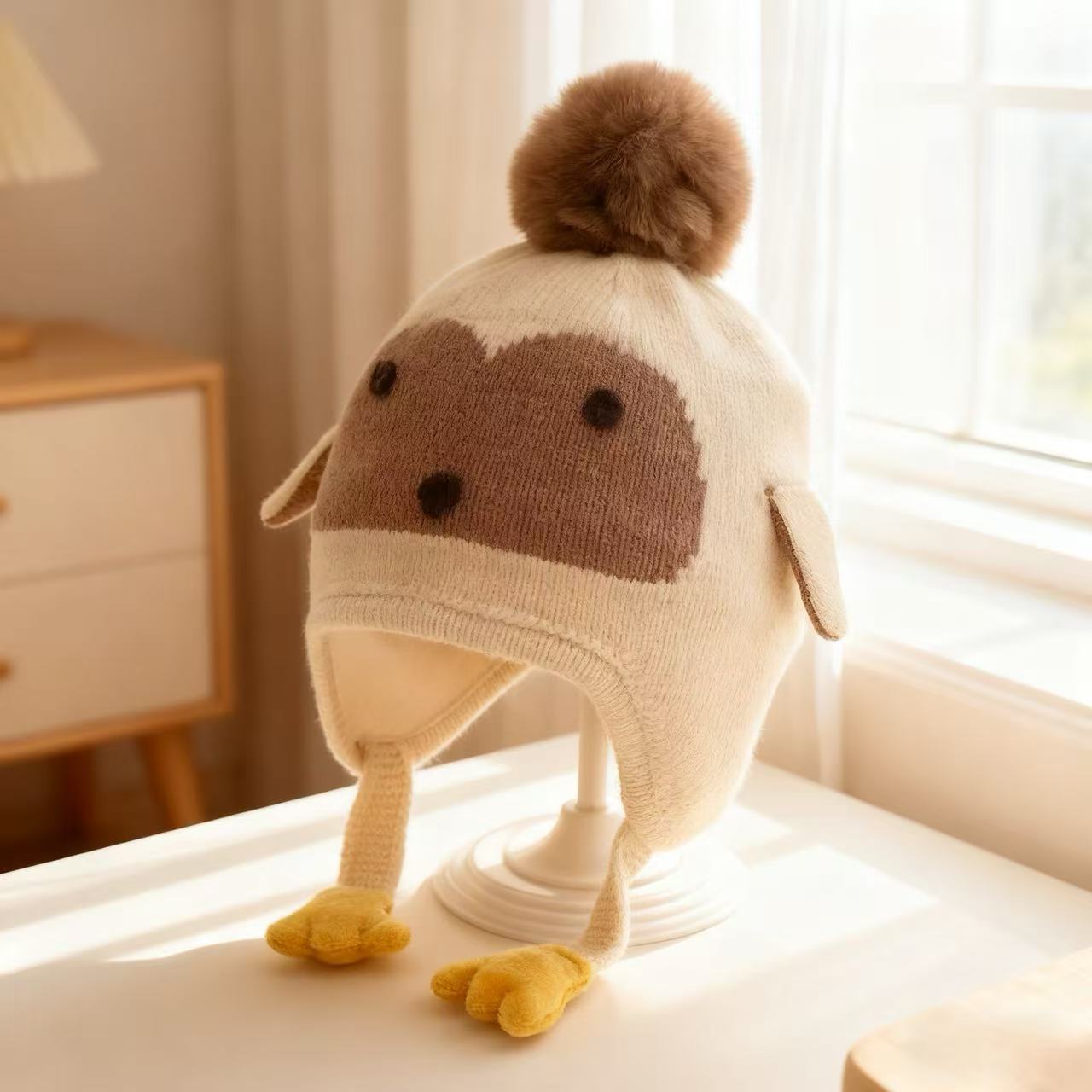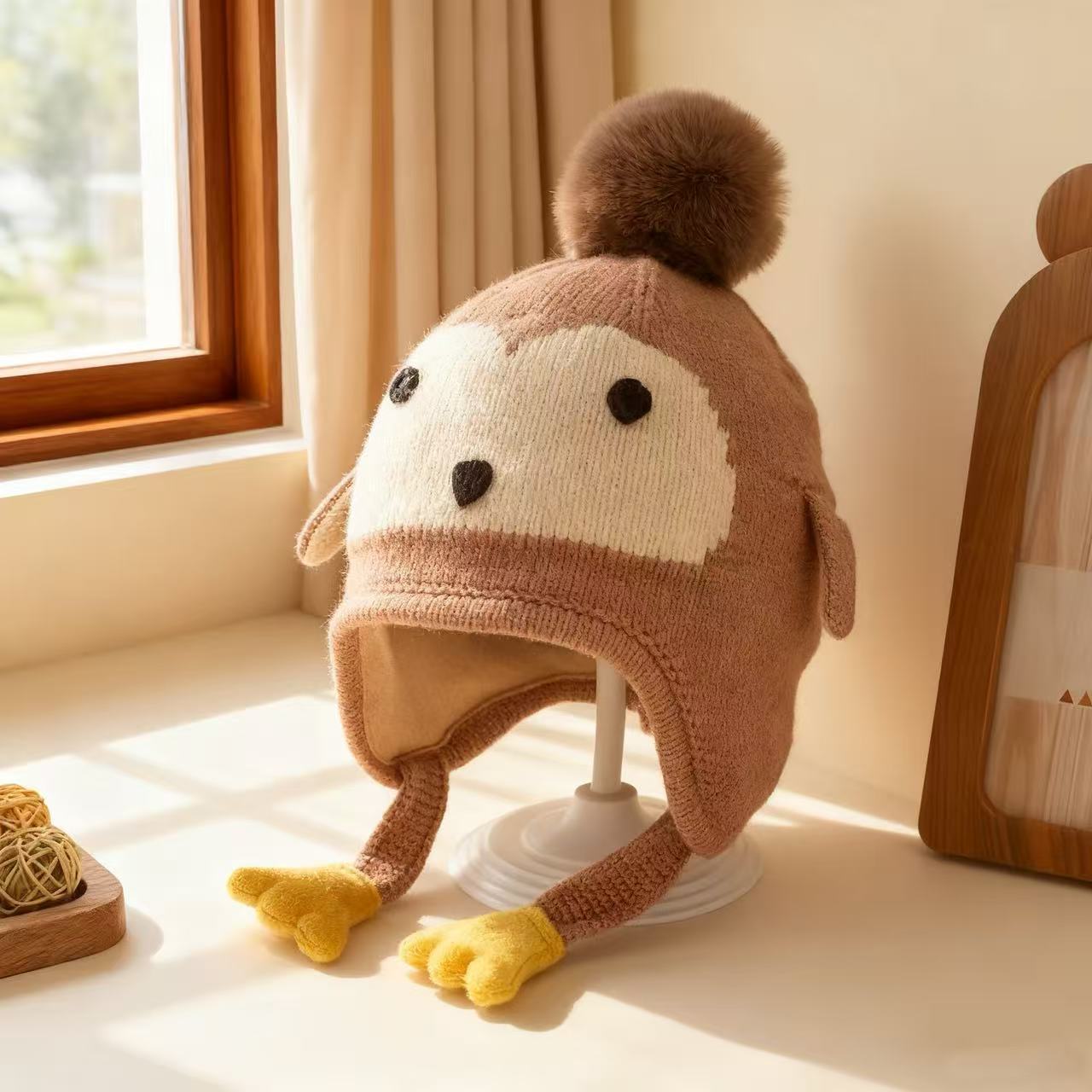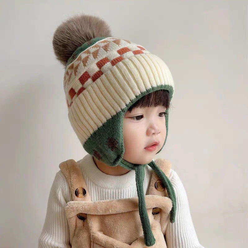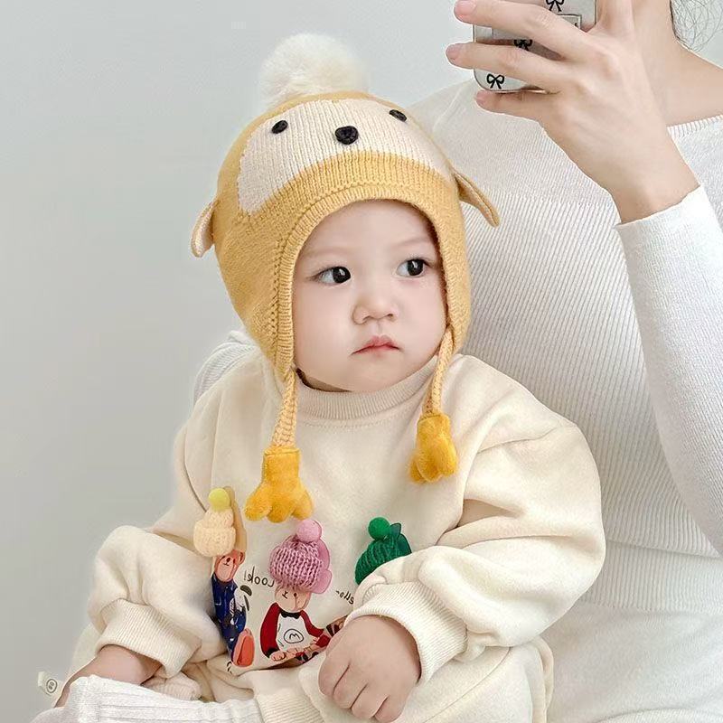 秋冬に合わせて子供の毛糸帽子の女の子の赤ちゃんの保温耳保護ニットの帽子防風毛糸の赤ちゃんの帽子