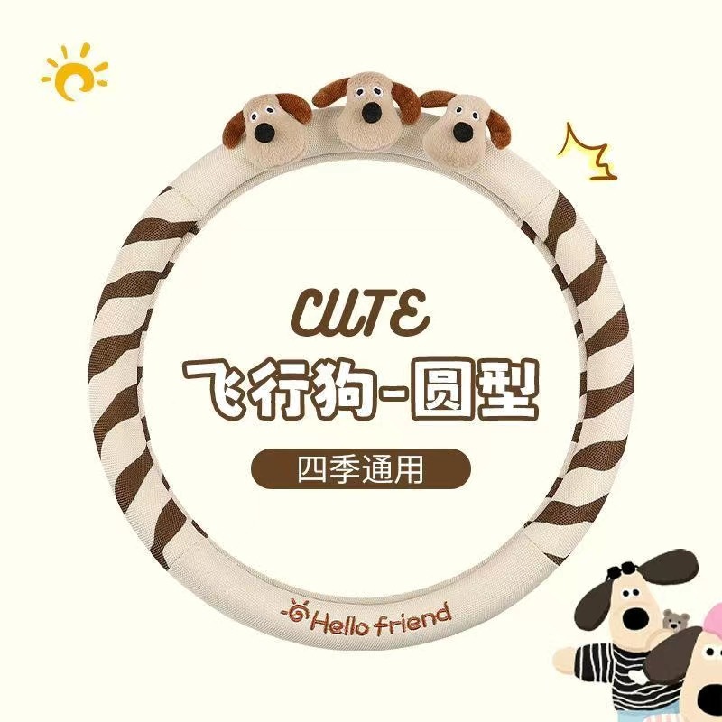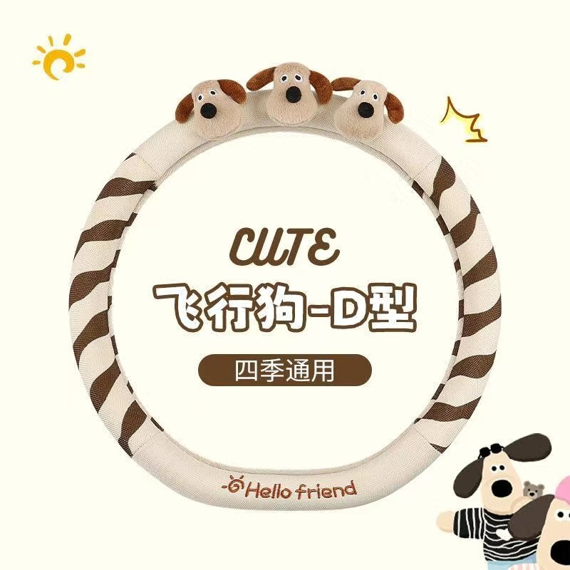 【新品売れ筋】マスタードッグぬいぐるみハンドルカバー O 型 / D 型対応 普通車 / 軽自動車 / 軽トラ / ミニバン適用 フィット感抜群 ギフトに最適