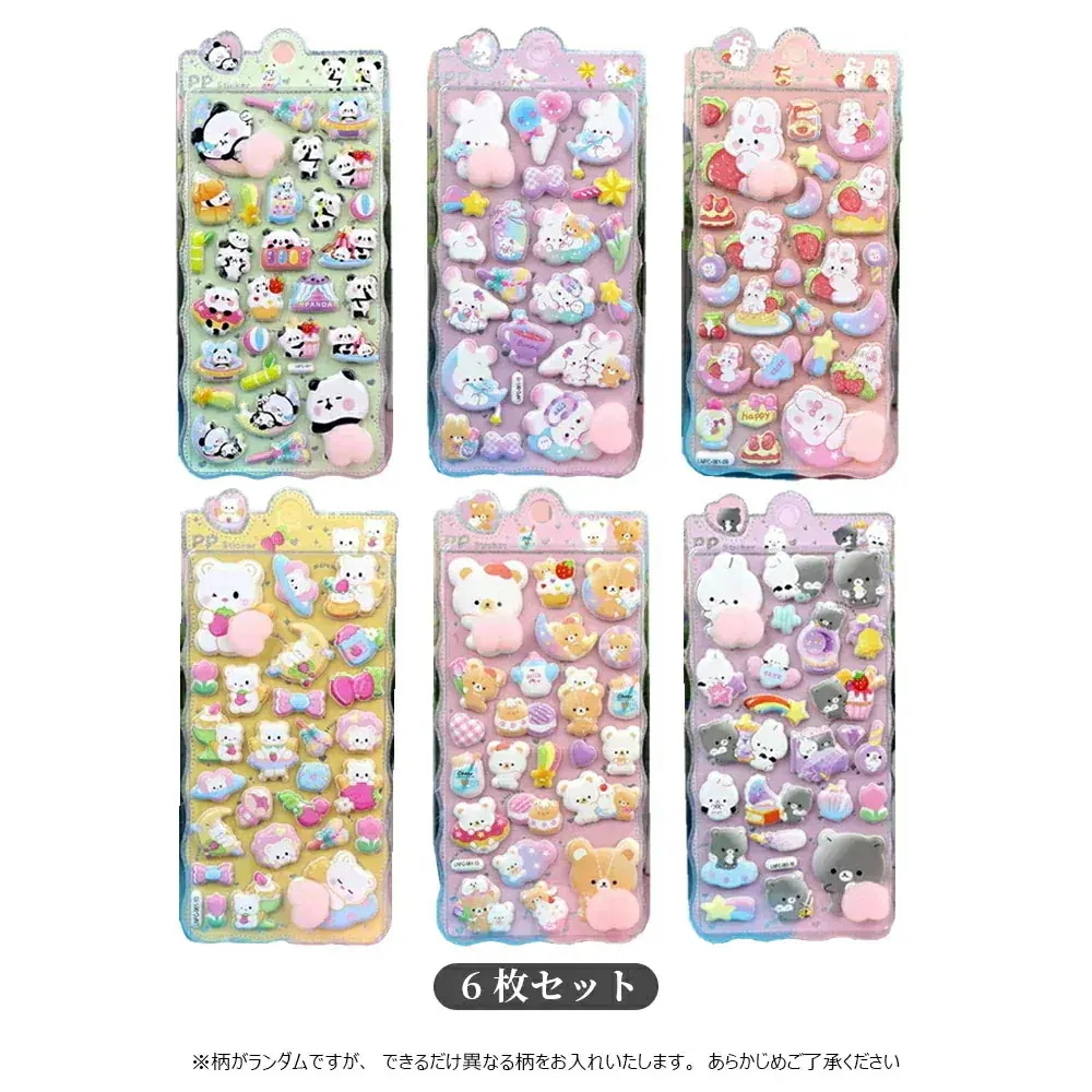 【6枚セット】3Dシール 立体シール ぷくぷくシール ドロップ シール おはじきシール ぷっくりステッカー 交換 シール帳 ボンボン つやつや立体シール シール手帳 ぷっくり つやつや ぷくぷくシール