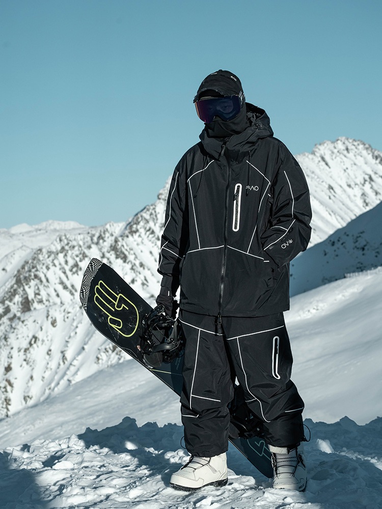 スノーボードウェア 2025 2026 黒 反光 裏地付き 上下セット レディース メンズ 3L スキーウェア スノボウェア パンツ アウター