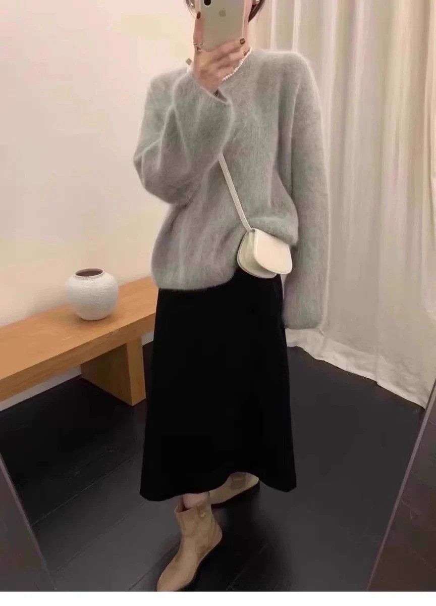 【2026厳選シャギーニット】 プレミアム 7色 モヘア クルーネック プルオーバー セーター レディース 秋冬 柔らかい アウター モヘア トップス 厚手 韓国ファッション