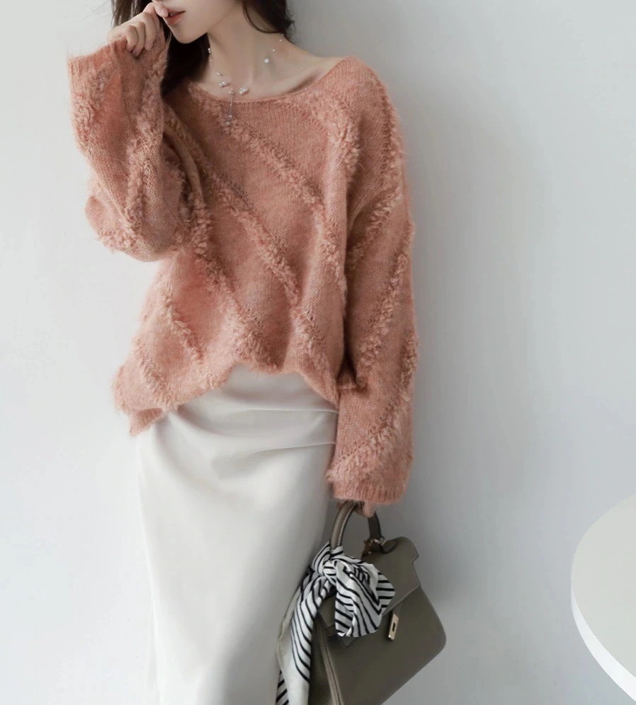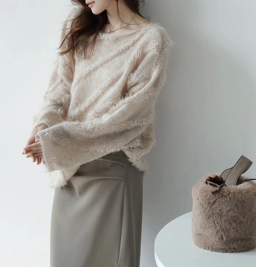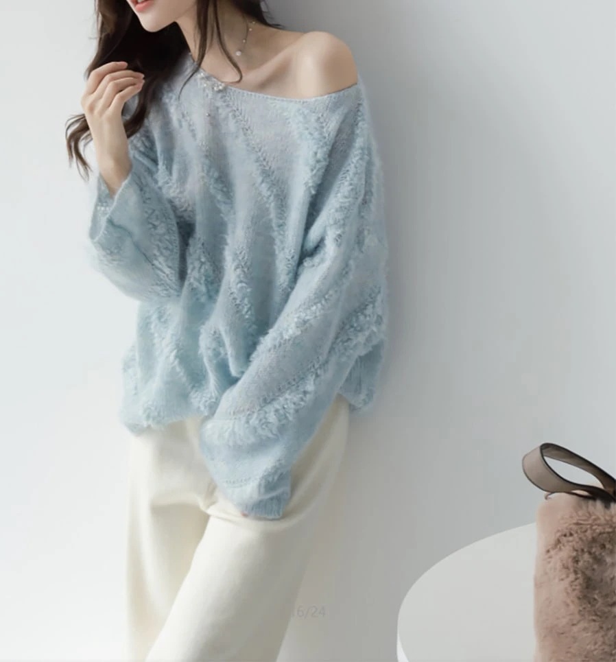 【2026厳選シャギーニット】 モヘア 柔らかい ストラップレスワンネック セーター 秋冬 新作 ニット トップス レディース 韓国ファッション