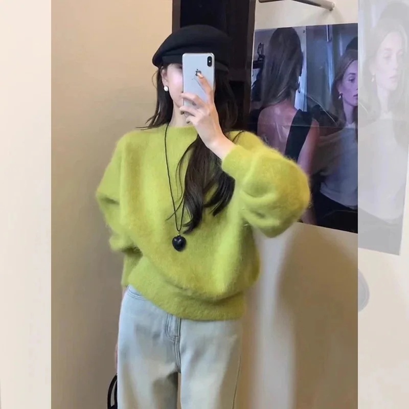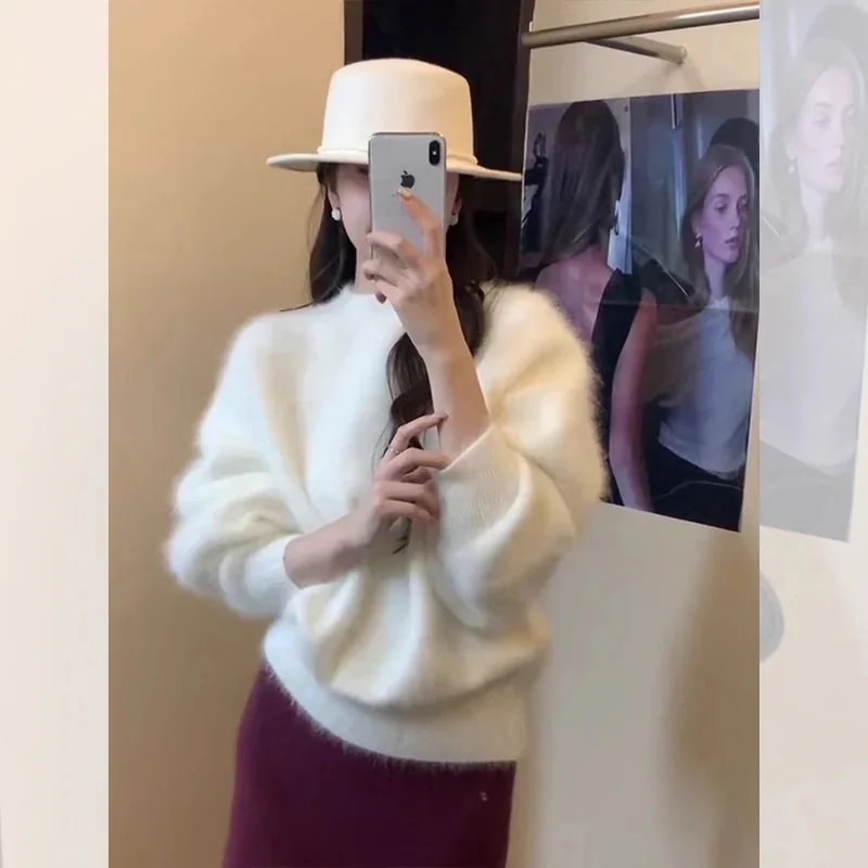 【2026厳選シャギーニット】 柔らかい 白 モヘア プルオーバー セーター レディース 秋冬 アウター ゆったり ごろごろ ニットトップス 韓国ファッション