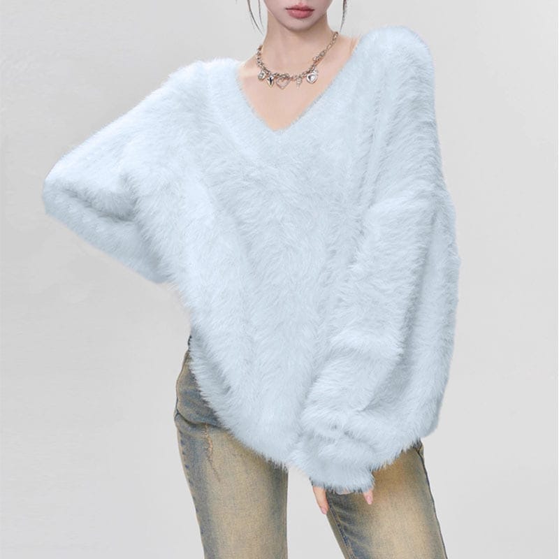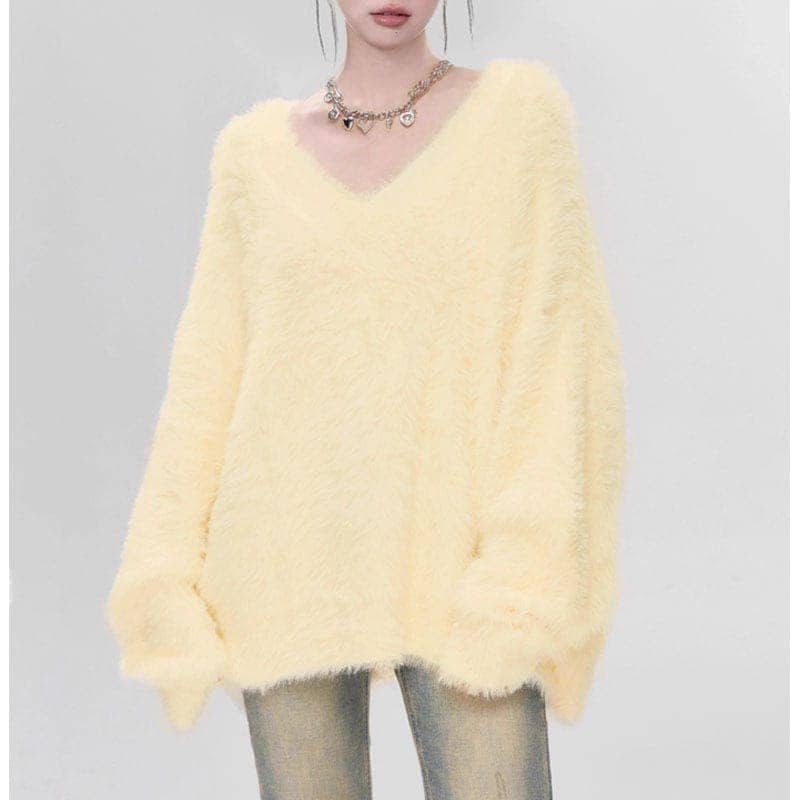 【2026厳選シャギーニット】 ピンク Vネック モヘア プルオーバー セーター レディース 秋冬 厚手 柔らかい スローチー ミンク ニット トップス 韓国ファッション