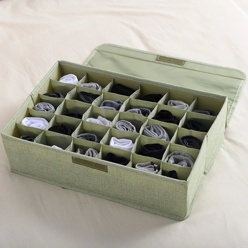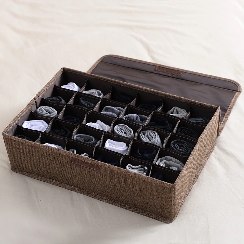 折りたたみ水洗い可能綿麻下着収納ケース 防湿多格子靴下収納ボックスL引き出し式収納ボックス