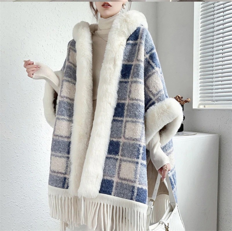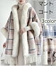 マントコート ポンチョコート レディース ケープコート コート チェック柄 羽織 フード付き 分厚い アウター ファー付ケープコート お洒落 体型カバー