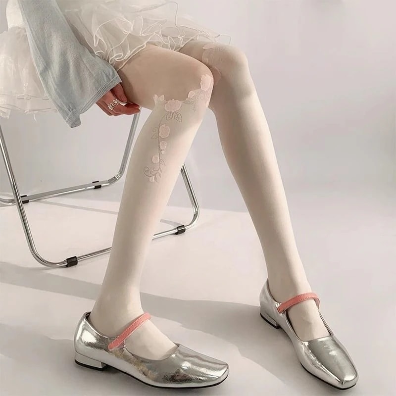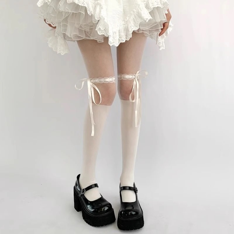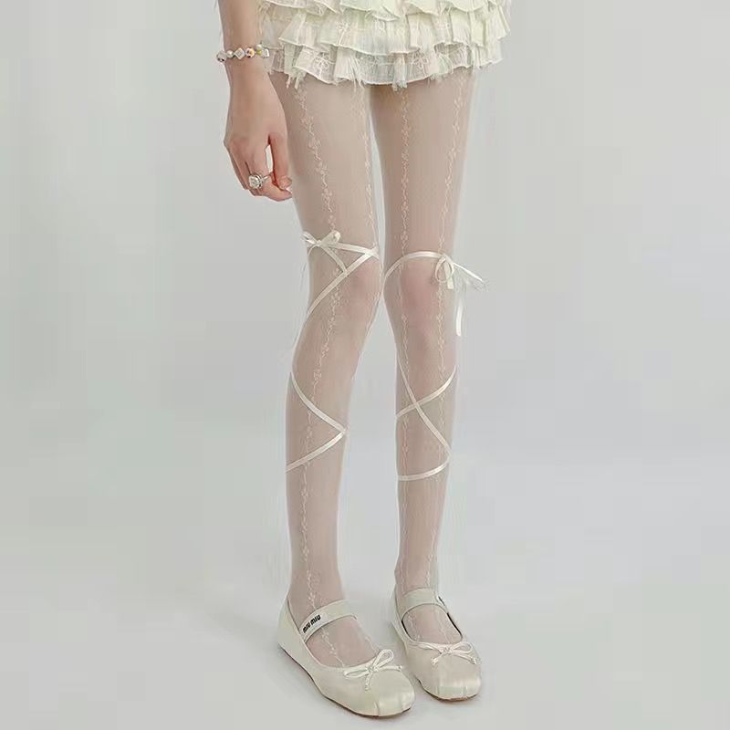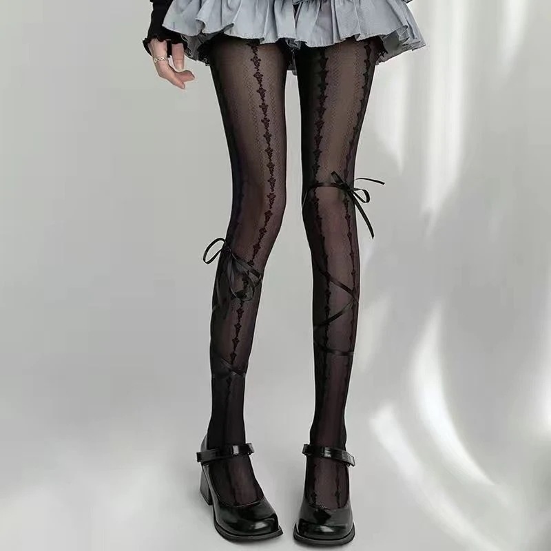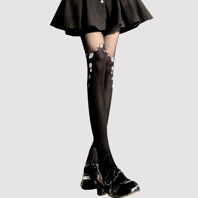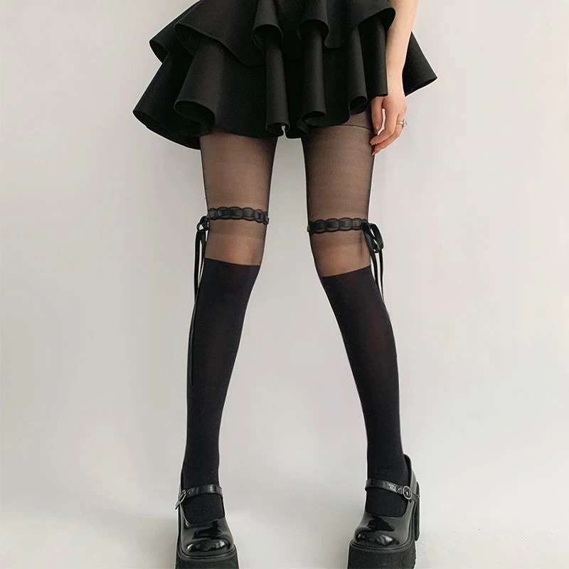 ストッキングロリータパッチワークタイツ女薄手学院風着やせギャル黒糸タイツ