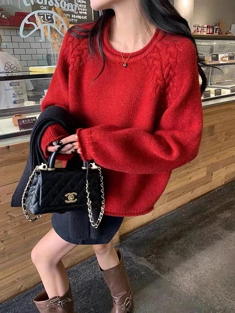 韓国カジュアル 万能 おしゃれ ニット プルオーバー セーター 女性用 2026新作 レディース ゆったり レイジー スタイル ニット セーター
