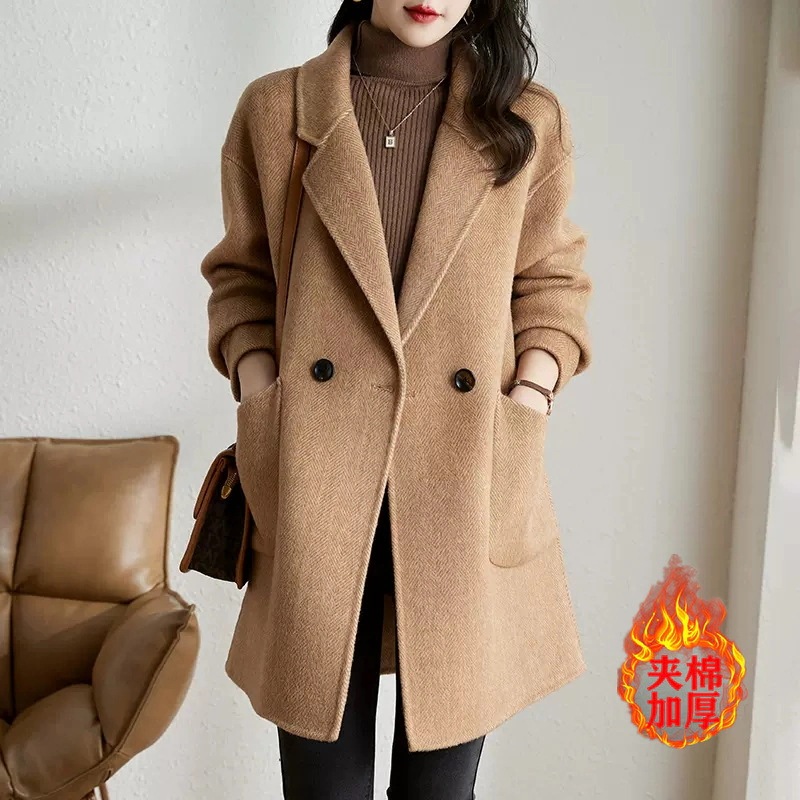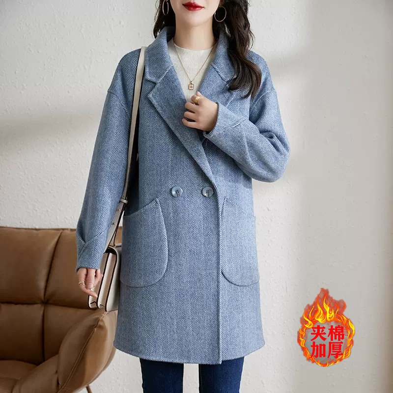 ツイードコート女2025秋冬新韓版気質厚手ミディアム ヘリンボーンラシャコートパーカー・ブレザーネックコート・ツイードコート