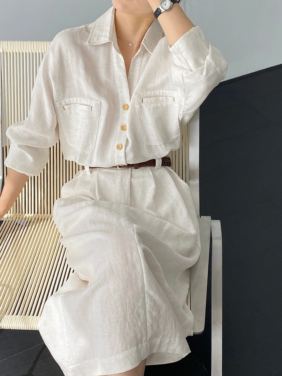 秋 リネン 長袖 新作 新品掲載!2026 レディースファッション シャツワンピース デザイン感 ワンピース