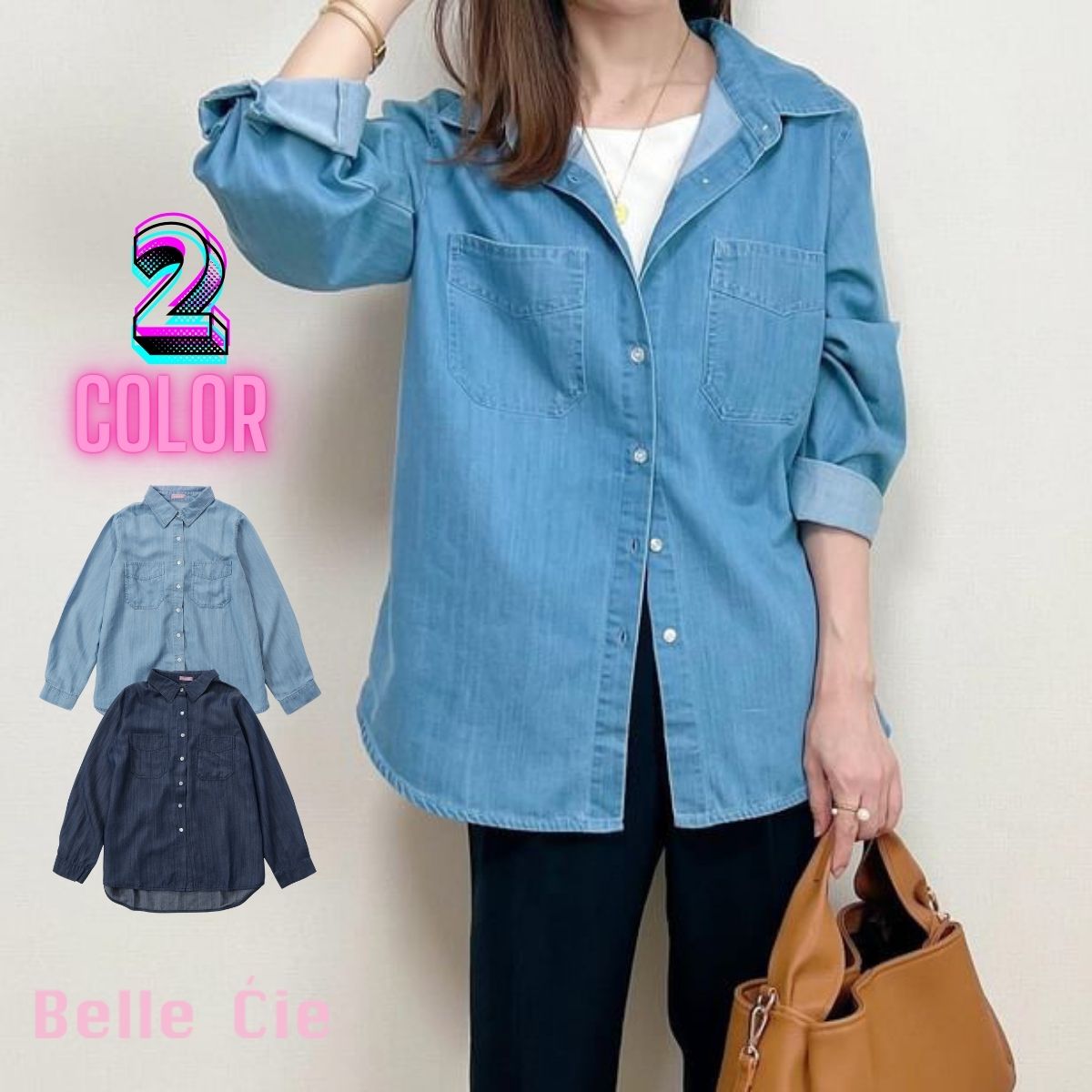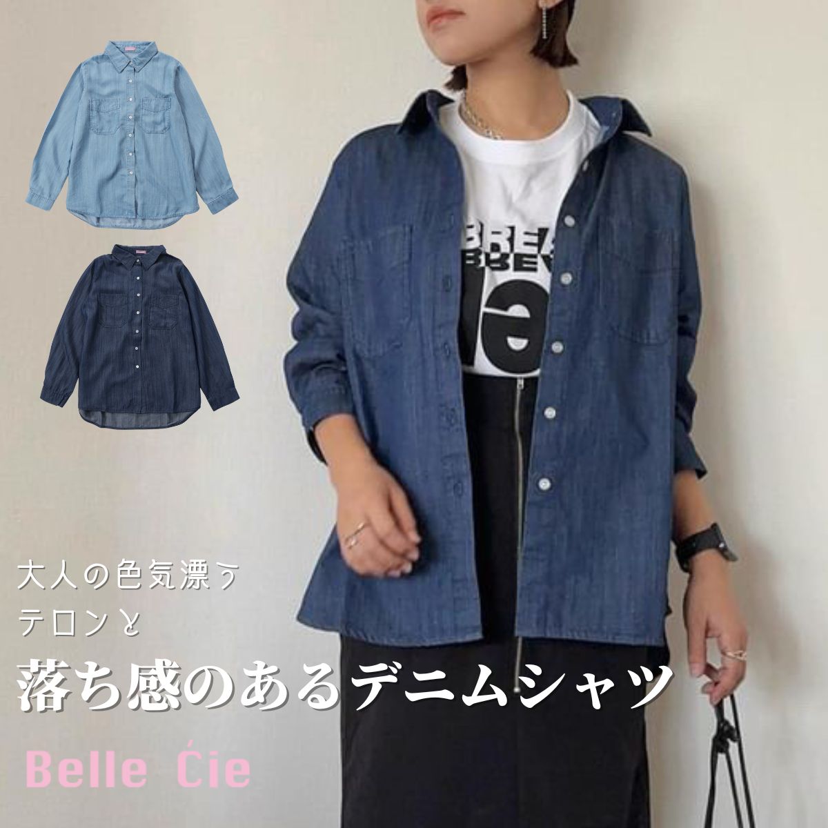 デニムシャツ レディース 長袖 ダンガリーシャツ 羽織り ライトオンスデニム ブラウス おしゃれ かっこいい