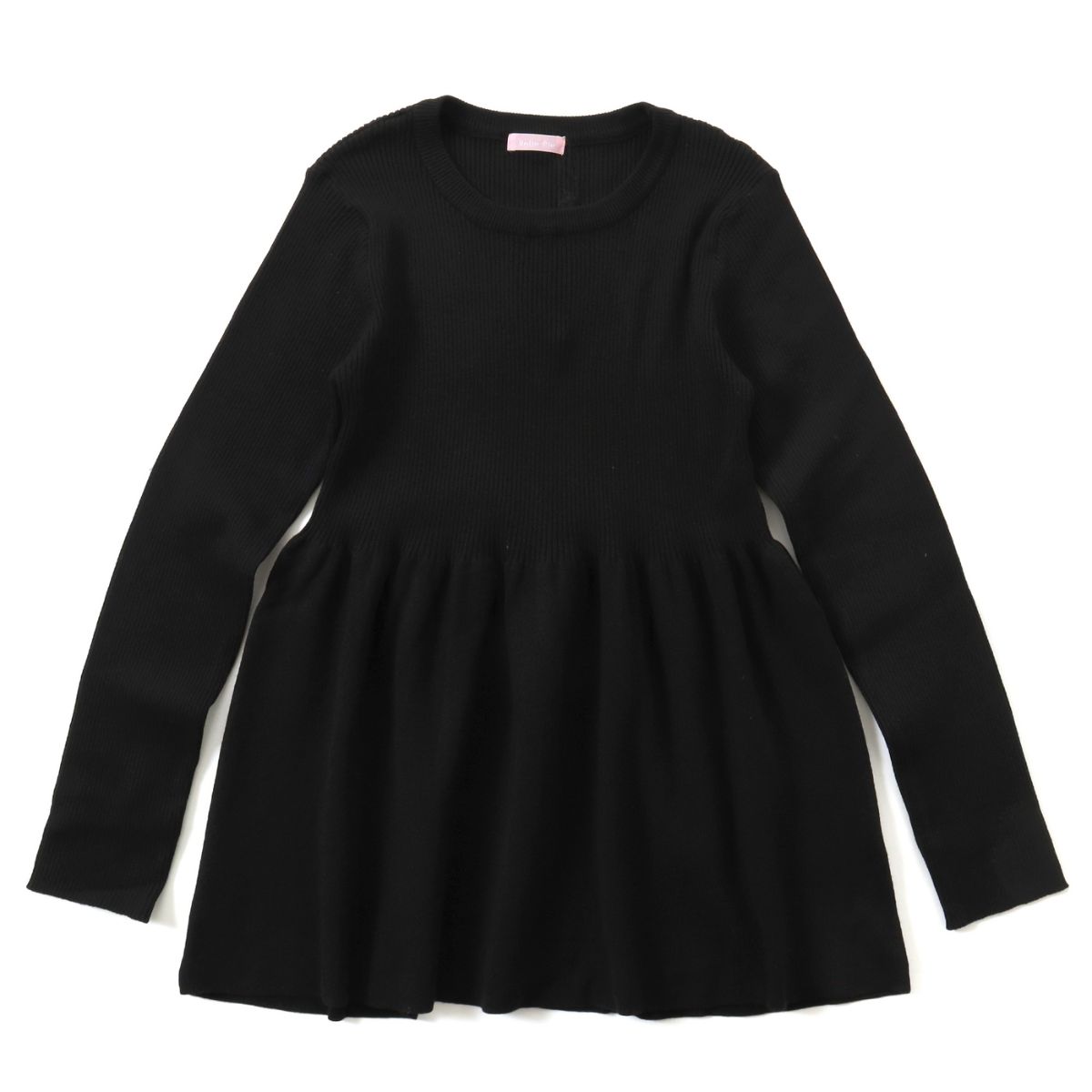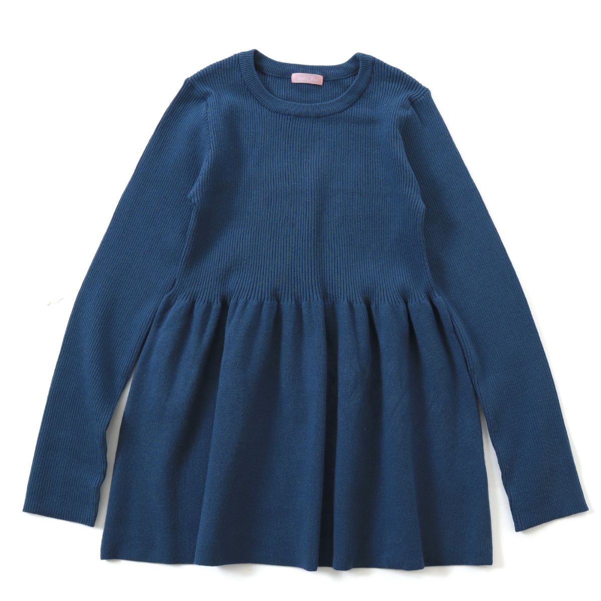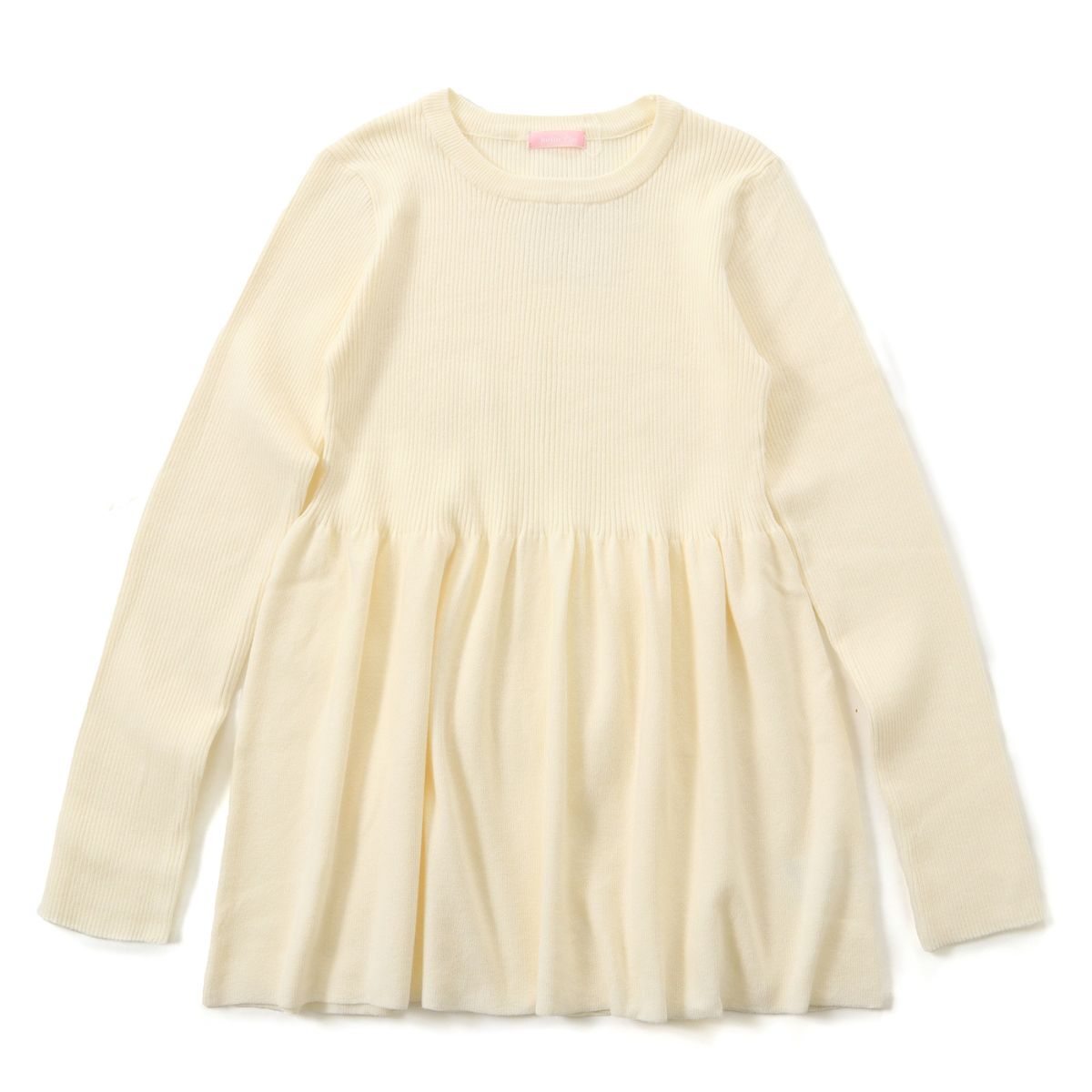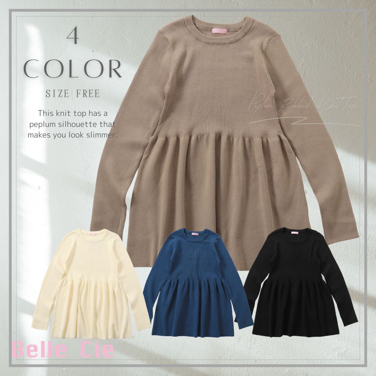 ニット ペプラム チュニック トップス セーター レディース 長袖 ラウンドネック シンプル おしゃれ Aライン 韓国ファッション フレア 上品