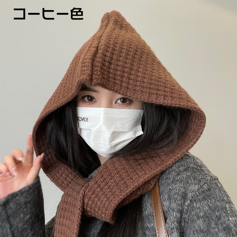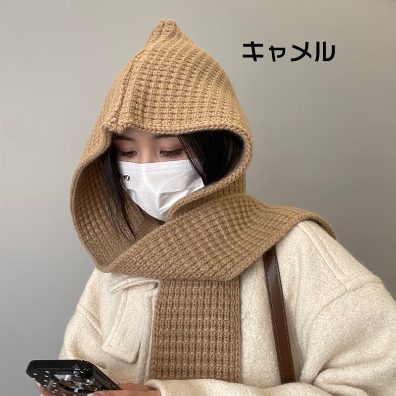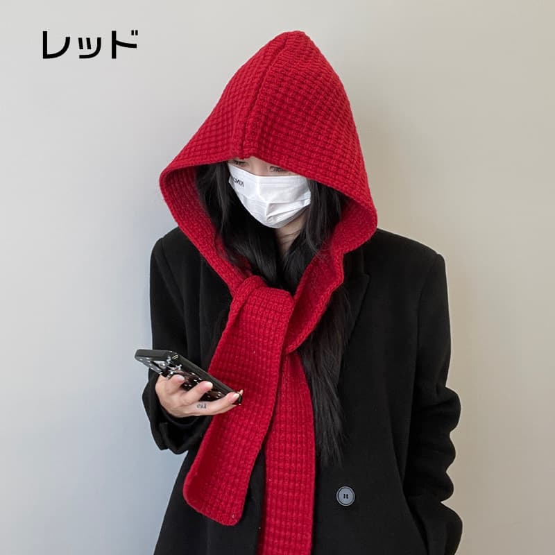 [新品到着!初回20%オフ]マフラーニットフード付きストールレディース秋冬ショール防寒肌触り良い無地ニットストール羽織肩掛けネック