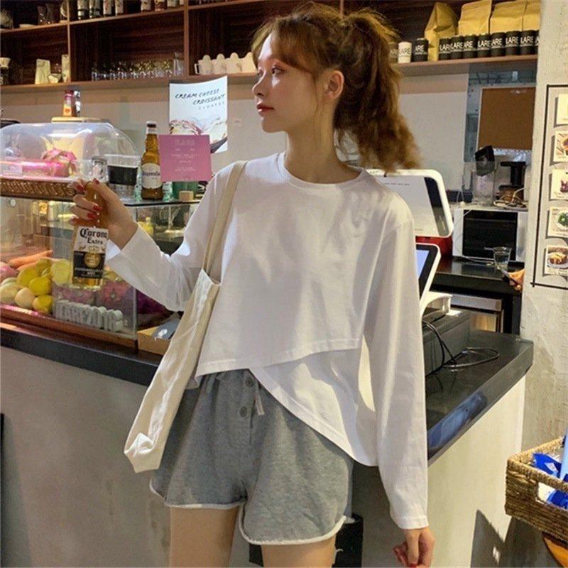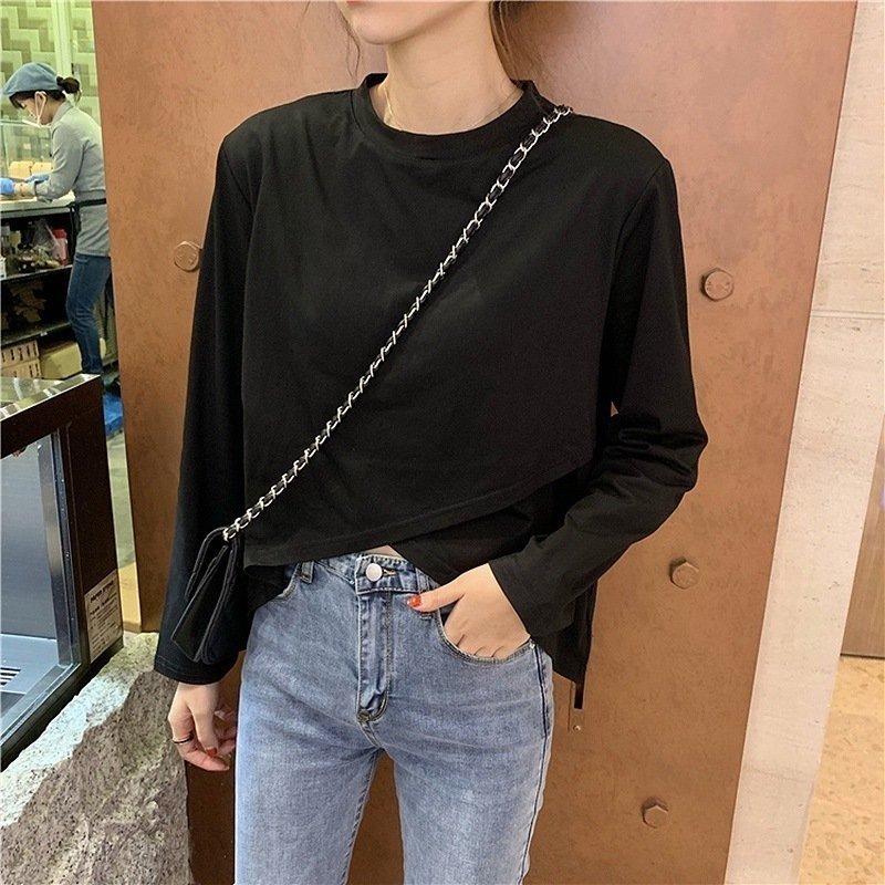 前後丈違い カットソートップス レディース クルーネック 黒 白 無地 定番 カジュアル 大人気 上品 可愛い シンプル 旅行 おしゃれ 春 夏 秋