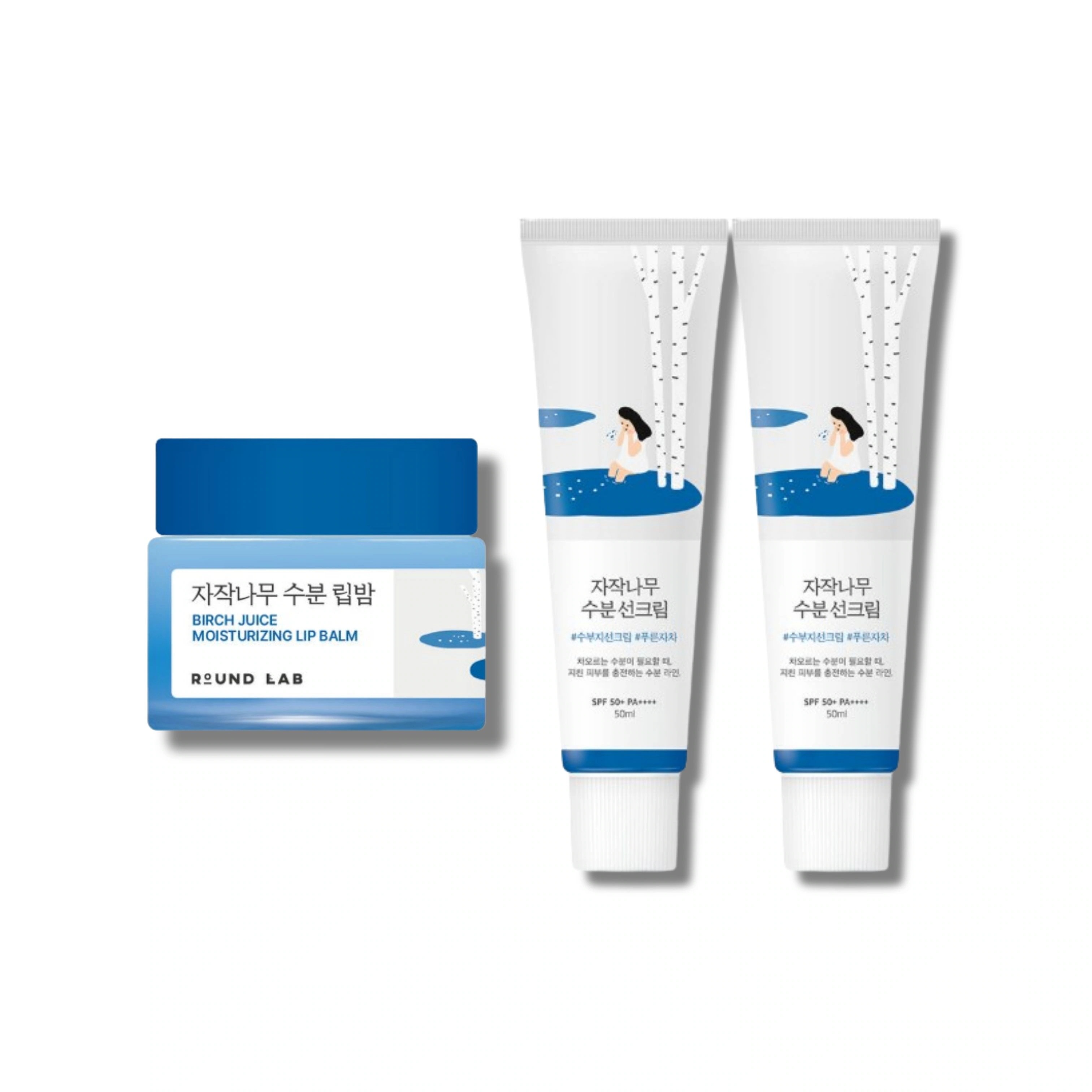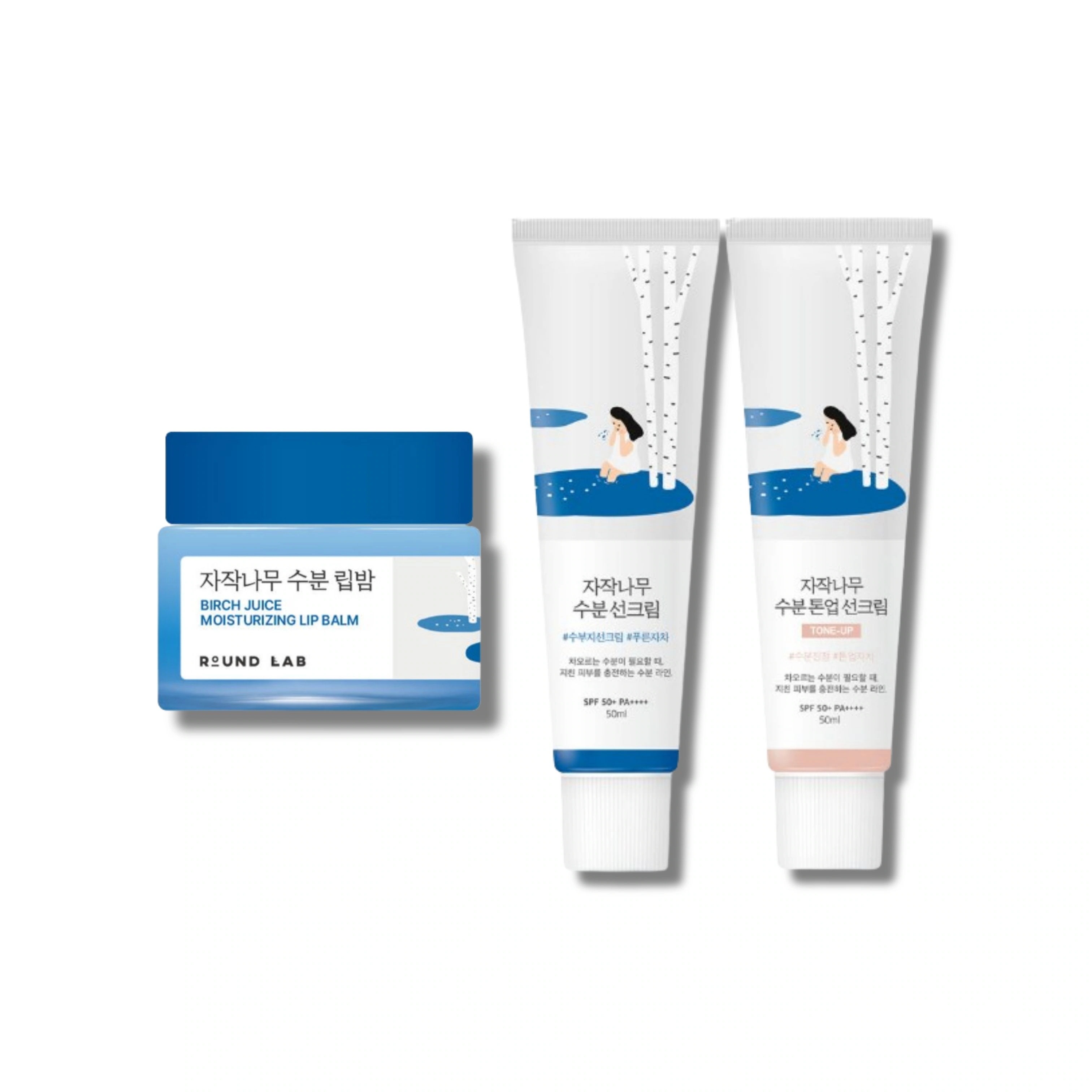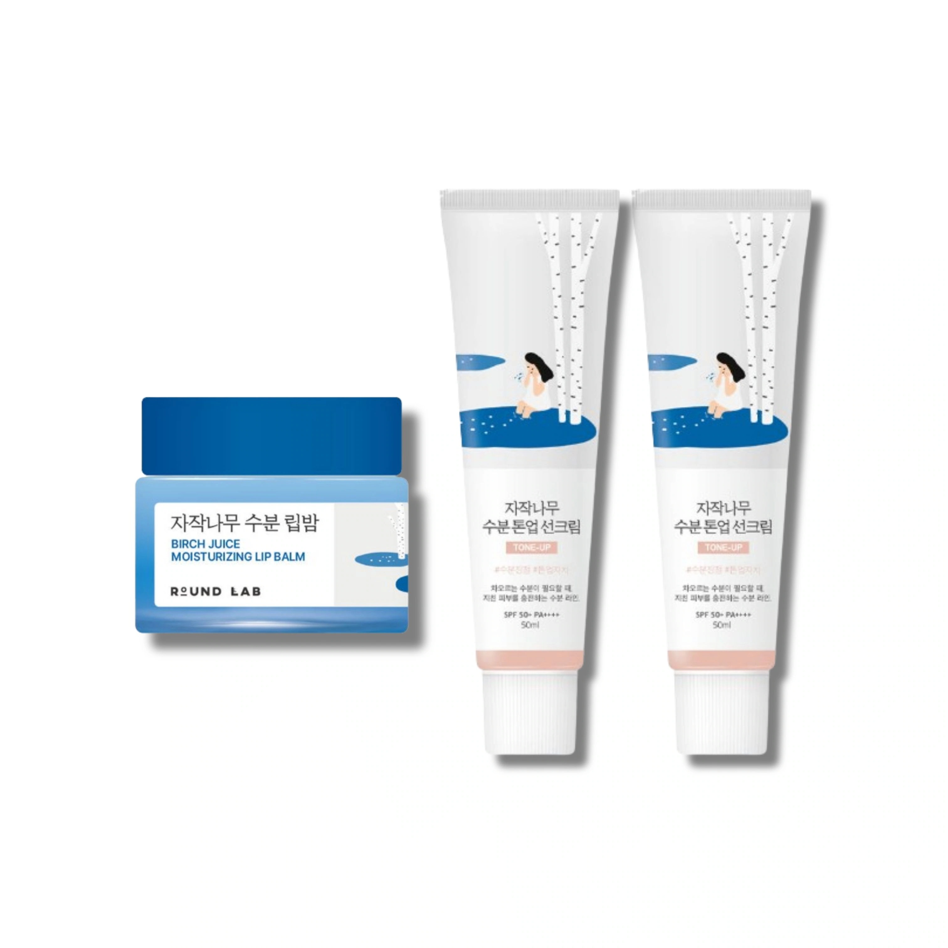 ROUND LAB[メディヒールマスクパック贈呈][正規品][四季用]白樺(シラカバ) 水分サンクリーム50ml,水分トーンアップサンクリーム50ml 2個+水分リップバーム 20g 選択1