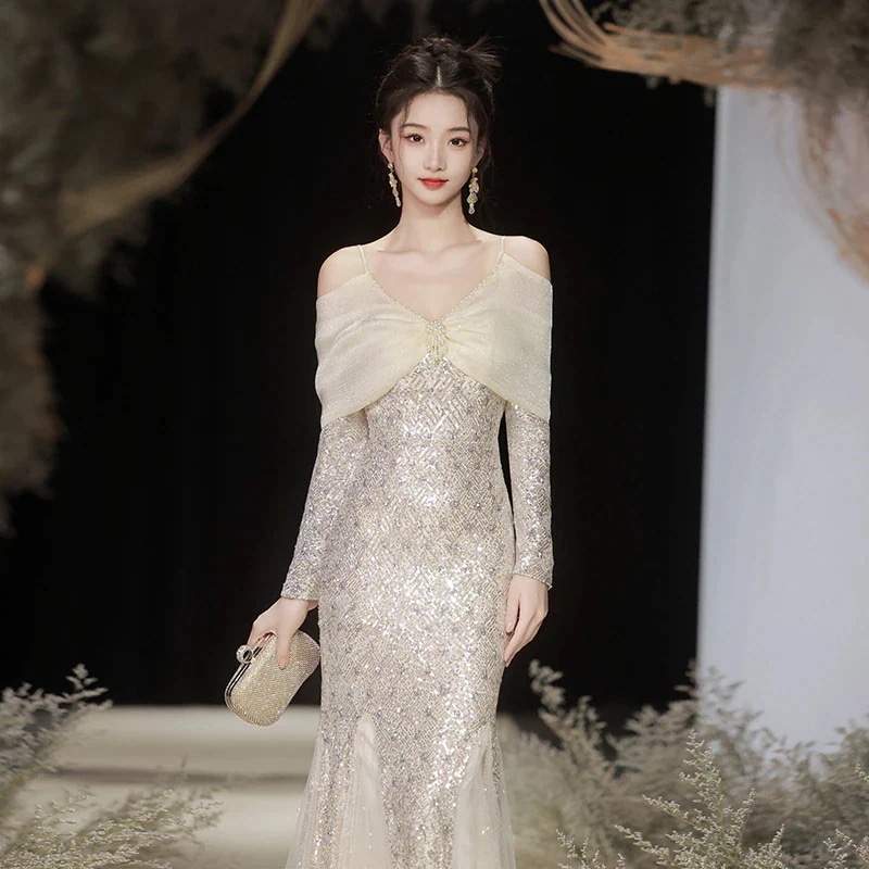 2025 秋冬 ドレス ワンピース キャミソールワンピース 新作 冬 おしゃれ 成人式 ウエスト引き締め ロングワンピース パーティードレス レディース
