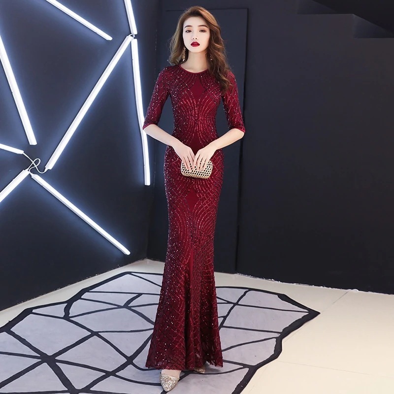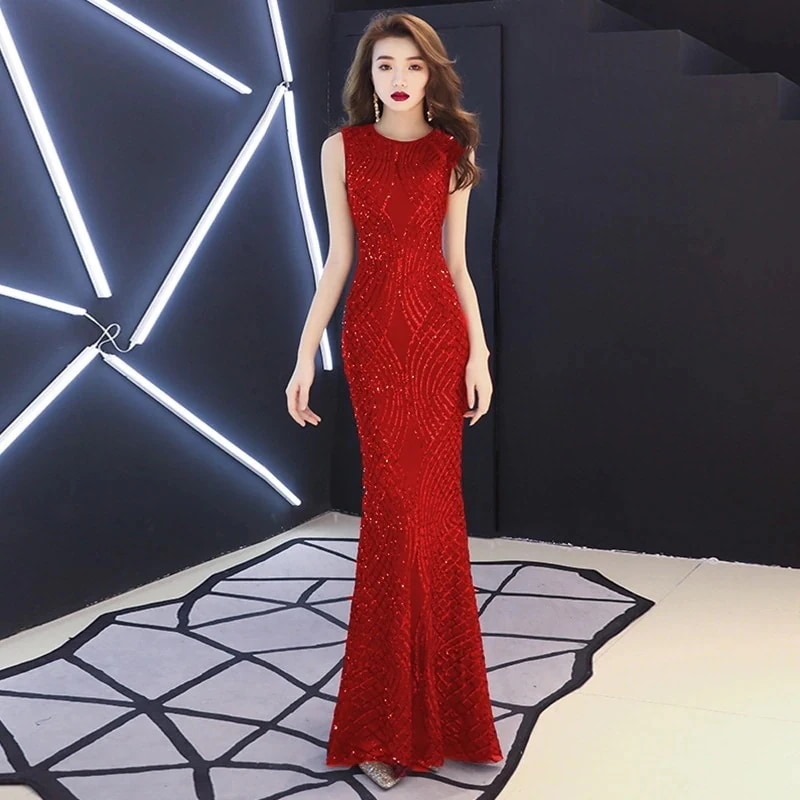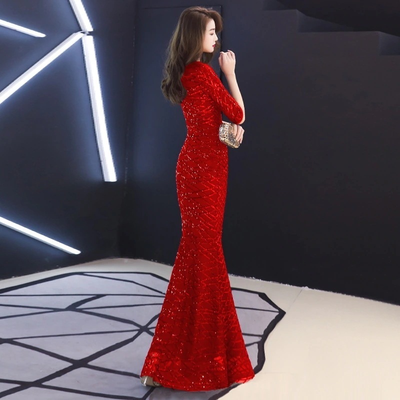 2025 秋冬 赤ドレス ワンピース フィッシュテールドレス 新作 ロングワンピース レッドドレス パーティードレス レディース
