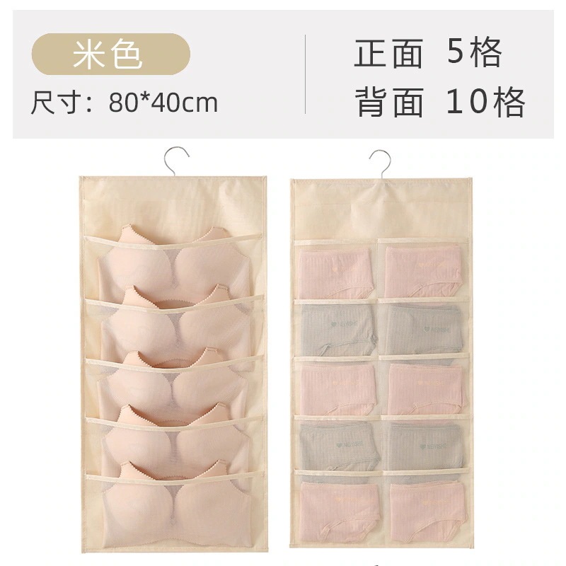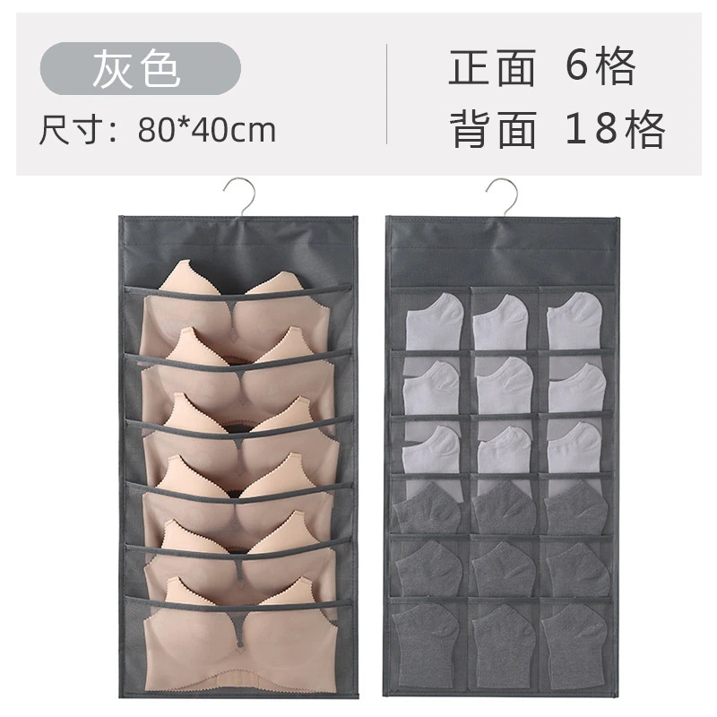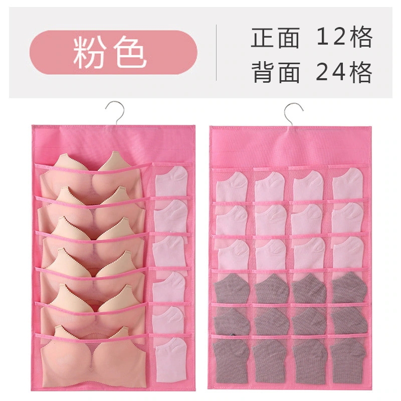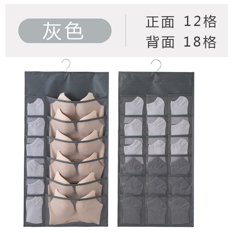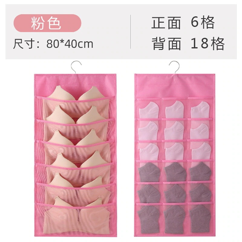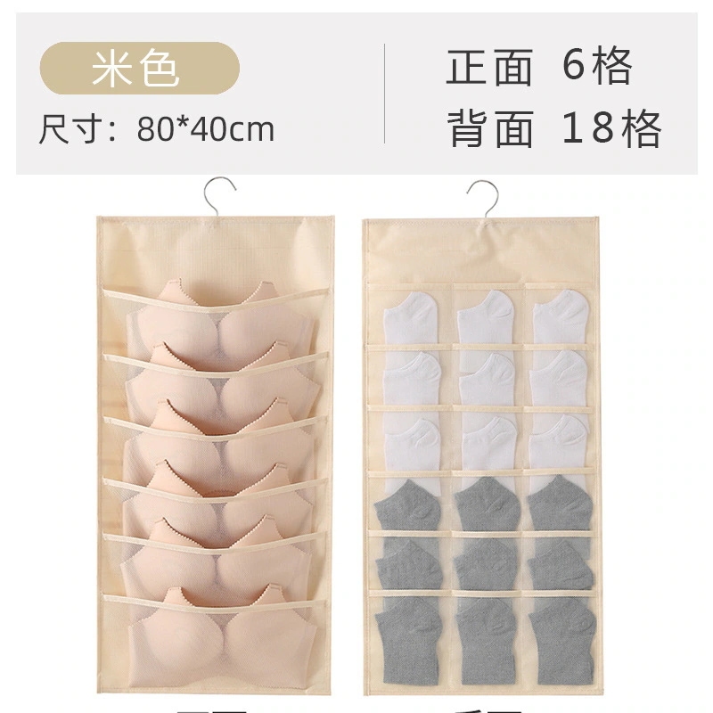 家庭用靴下・下着収納袋(布製) 寝室ドア裏・クローゼット壁掛け式 壁面小物収納ネットポケット ハンギング収納ボックス
