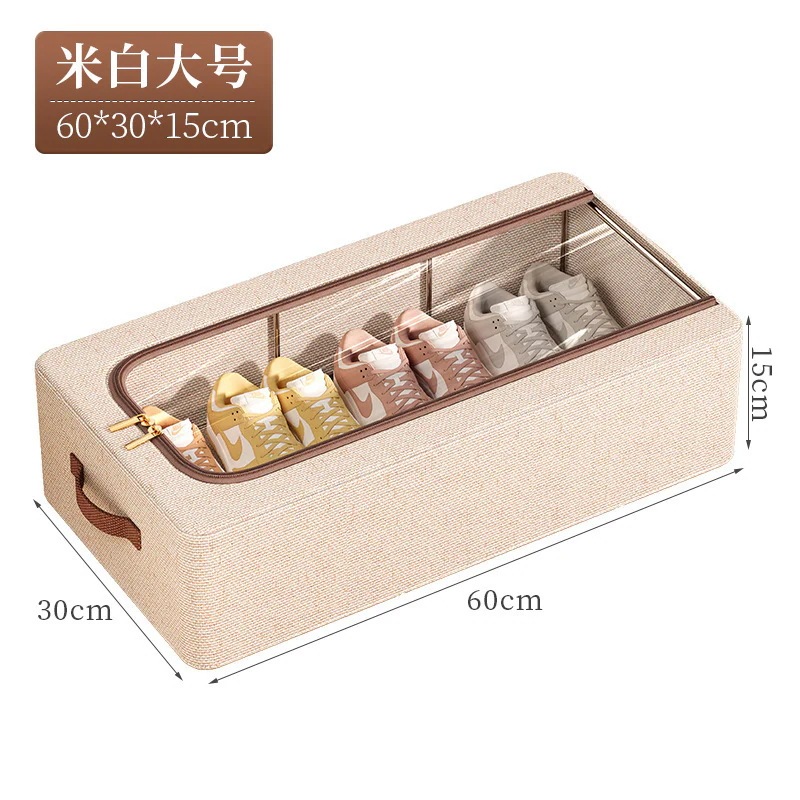 家庭用天山綿麻素材 寝室用可動式シューズ収納ボックス 衣類収納可能 折りたたみ式 ベッド下収納シューズボックス