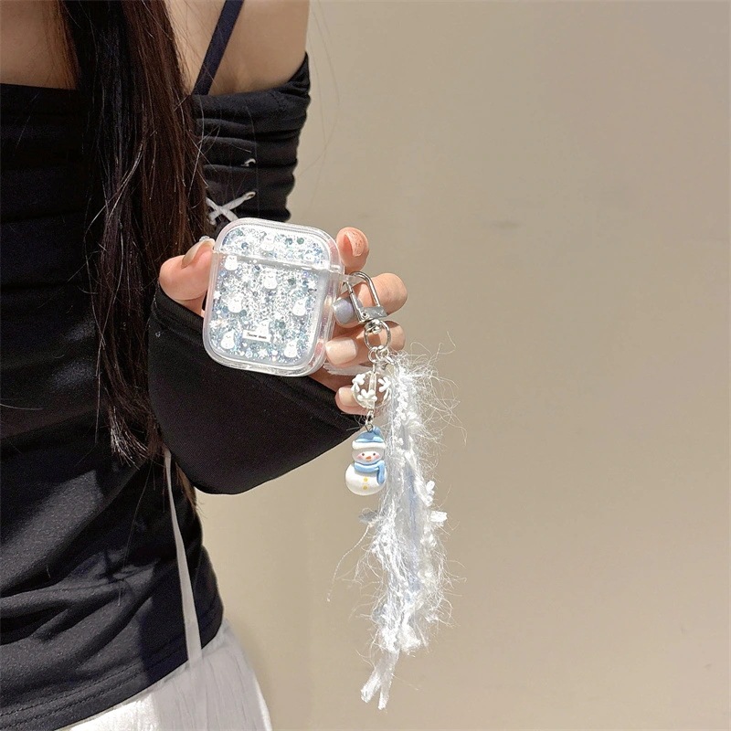高級感あふれる冬のキラキラ雪だるまチャーム AirPods4/3用ケースカバー 2pro第3世代対応