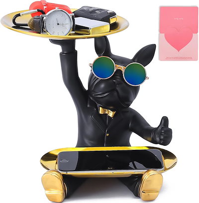 要チェック座っている犬さん置物 オブジェ 眼鏡やギフトカード付 面白い 誕生日プレゼント インテリア 置物 おしゃれ 鍵置き スマホ(wy104)