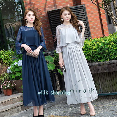 パーティードレス 結婚式 ワンピース ドレス 親族 袖あり ロング丈 ロング フォーマルドレス 大きいサイズ 春 夏 秋 冬 20代 30代 40代 50代 60代