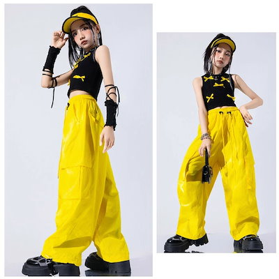 新アップグレード新品ダンス タンクトップ 袖カバー 女の子 へそ出しトップス おしゃれ 黒 ベスト かわいい 蝶結び キッズ ダンスウェア ヒップホップ 舞台衣装