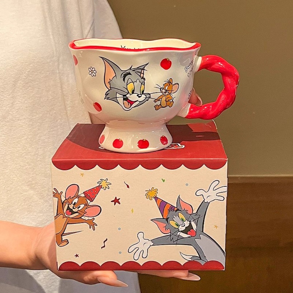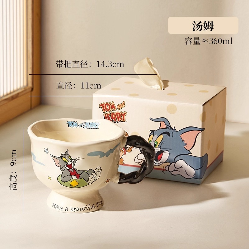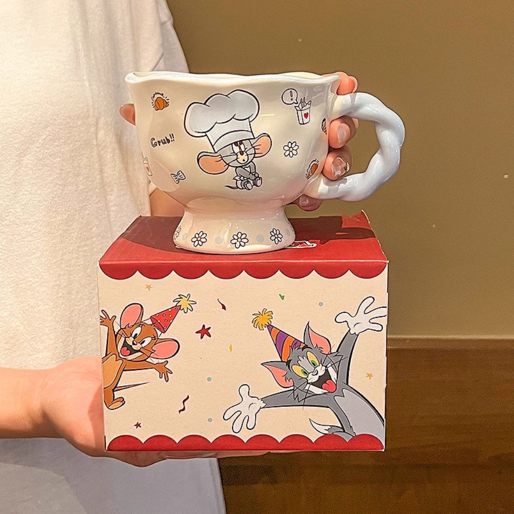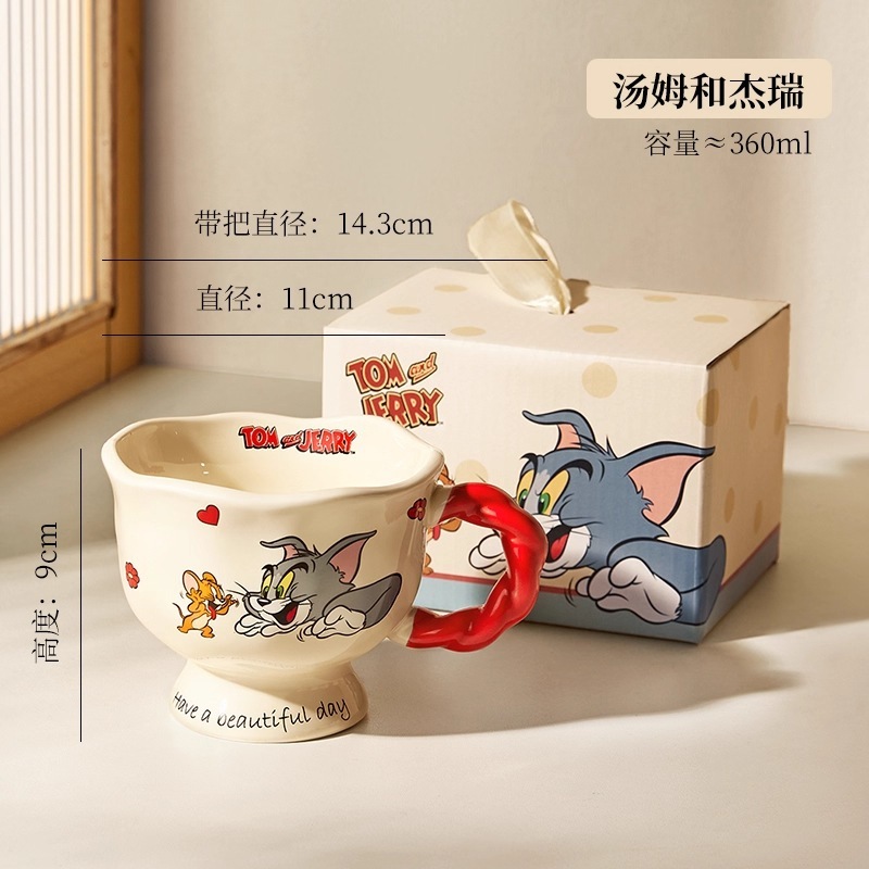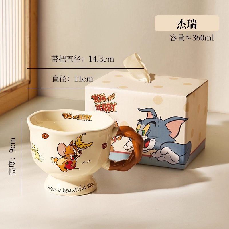 猫とネズミのマグカップ陶磁器カップ家庭用陶磁器カップカップ女子カップコーヒーカップ誕生日プレゼントバッチ
