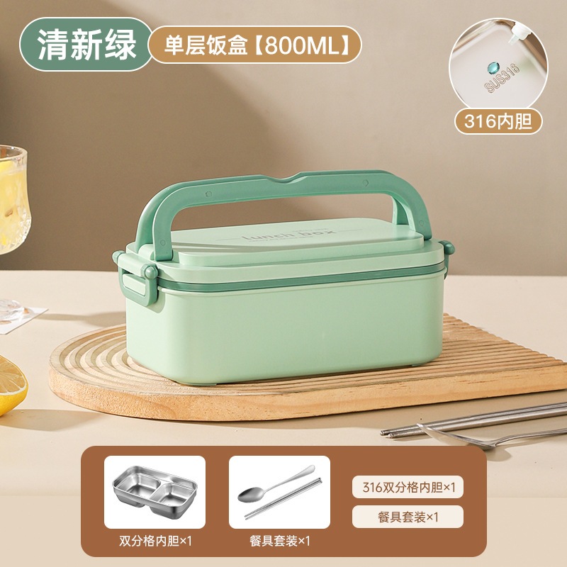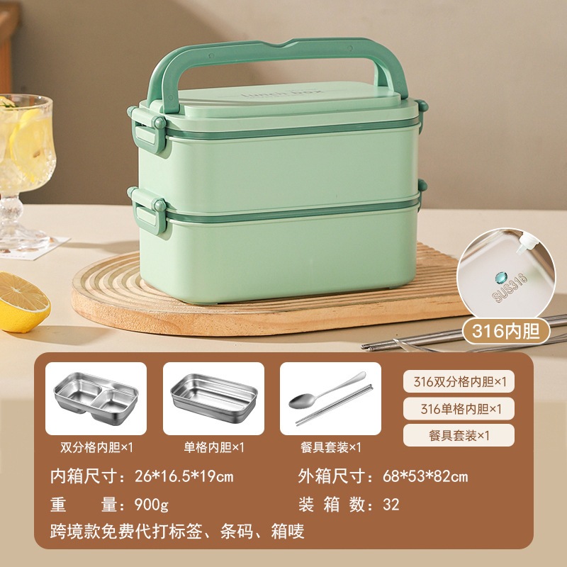 316ステンレス製弁当箱 マイクロ波炉加熱可能 多層 持ち手付き 学生・学校・機関用 食器 弁当箱