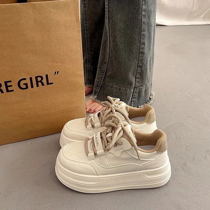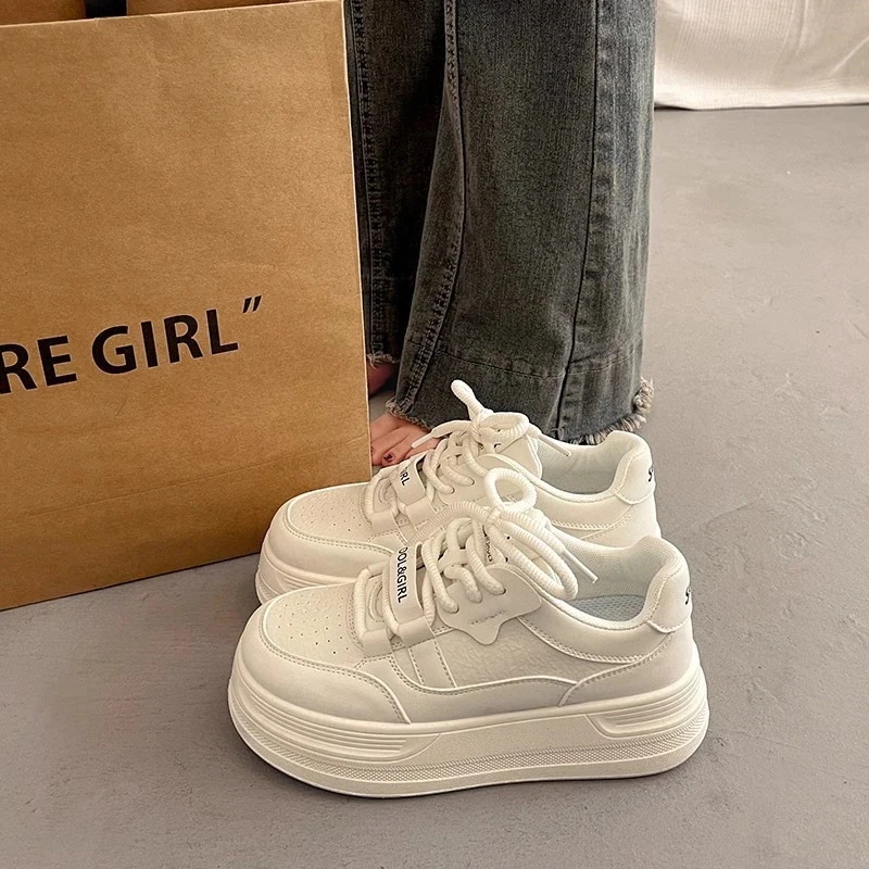 大人気の厚底ホワイトスニーカー女性用2025年新作 春秋シーズン向けカジュアルスポーツシューズ