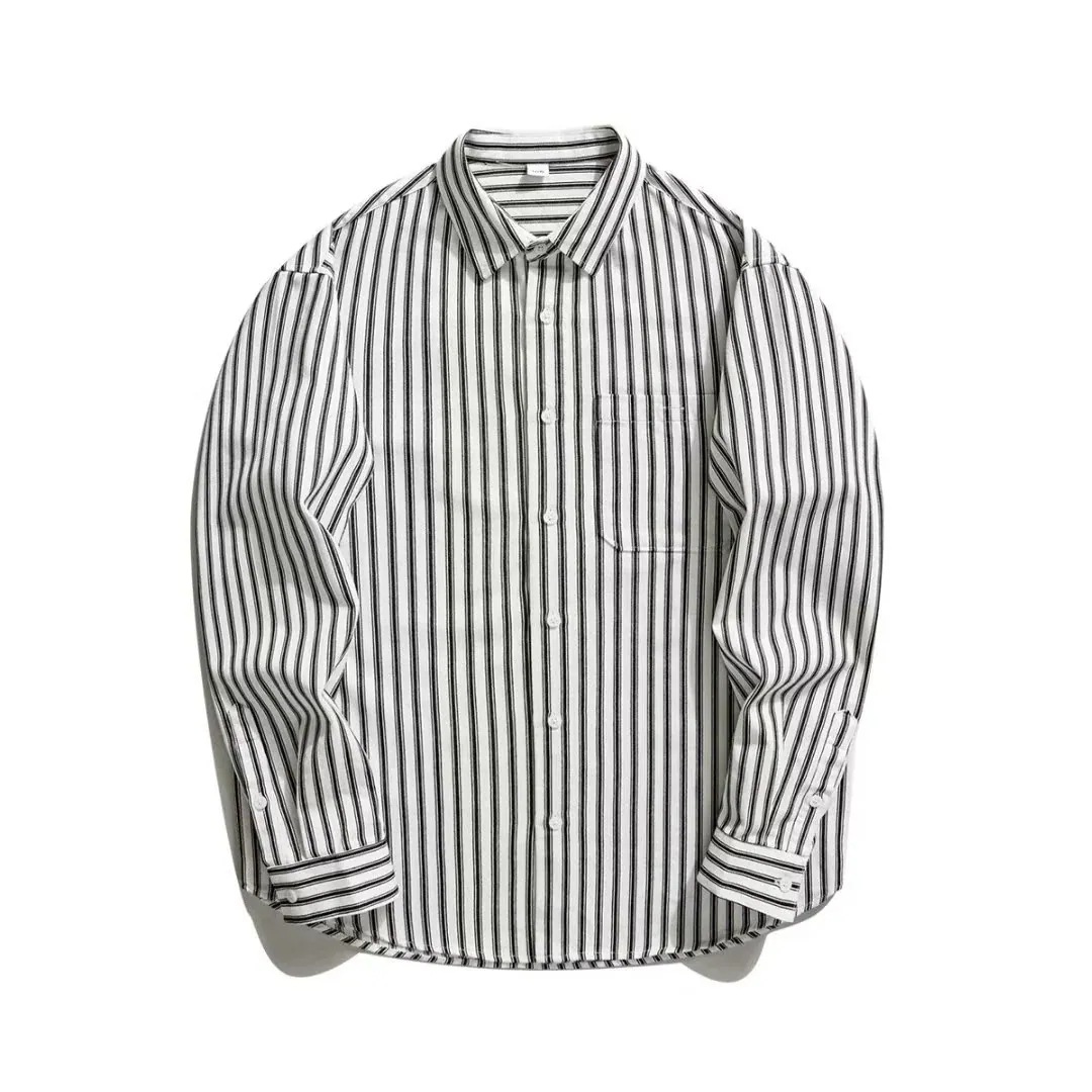 2 点目から送 料 無 料ミニマリストスタイルのストライプヴィンテージシャツ アメリカンカジュアルメンズインチシャツコットン長袖ブラウス スリムアウターメンズシャツ