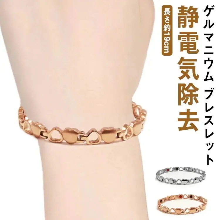 2 点目から送 料 無 料ゲルマニウム ブレスレット ステンレス製 静電気除去 ブレスレット ピンクゴールド 金属アレルギーフリー ハート形 おしゃれ レディース 静電気軽減 アクセサリー 血行