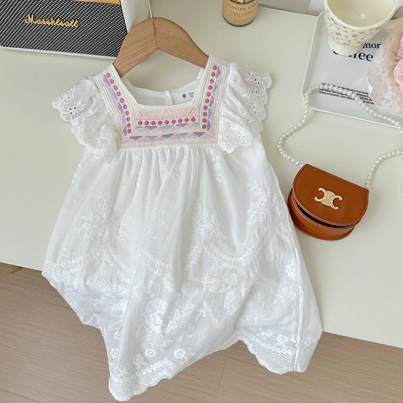 2 点目から送 料 無 料2025[ワンピース ]子供ワンピース 子供服 女の子 刺繍レースドレス子供半袖の子供ドレス25との韓国語バージョン