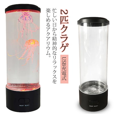 インスタント卓上 机の上の水族館 USB充電式 イルミネーション搭載 多色LEDライト クラゲ2匹 雰囲気作り 水族館 コンパクト 置物 水族館 電池式 アクアリウム