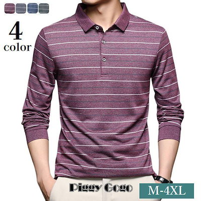 革新の技術!ポロシャツ 長袖 メンズ トップス ポロカラー ボーダー柄 プルオーバー 男性用 大きいサイズあり ハーフボタン ポロ襟 カジュアル 普段着 デイリー