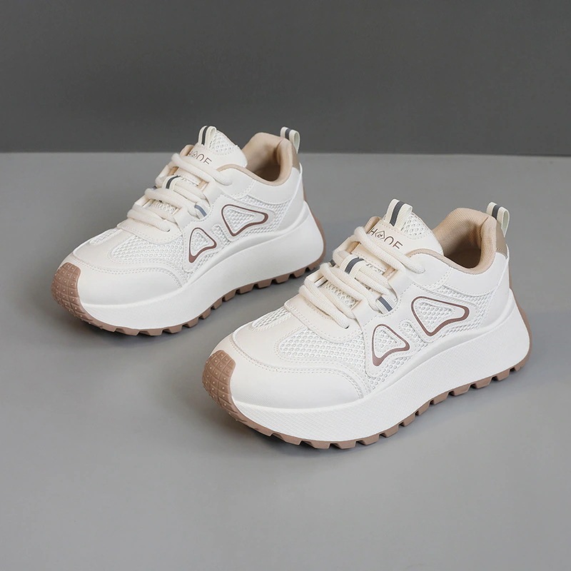 厚底スニーカー女性用 2025年春夏秋冬新作女性用メッシュ通気性シルバーヒールアップスニーカー 厚底カジュアルシューズ