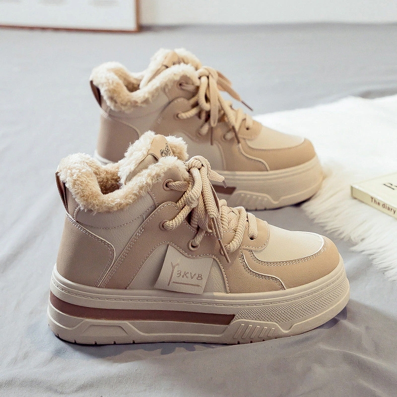 裏地付き厚手ハイカット女性用綿靴 2025年冬用保温スノーブーツ女性用万能新作厚底冬用綿靴厚底カジュアルシューズ