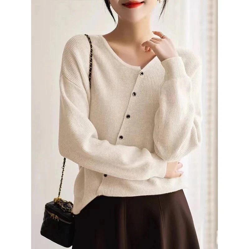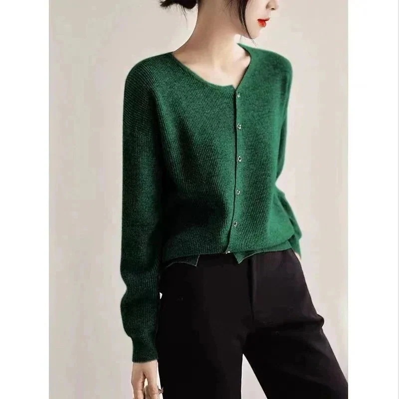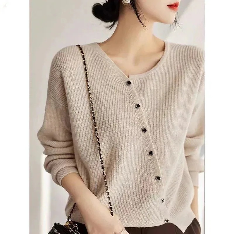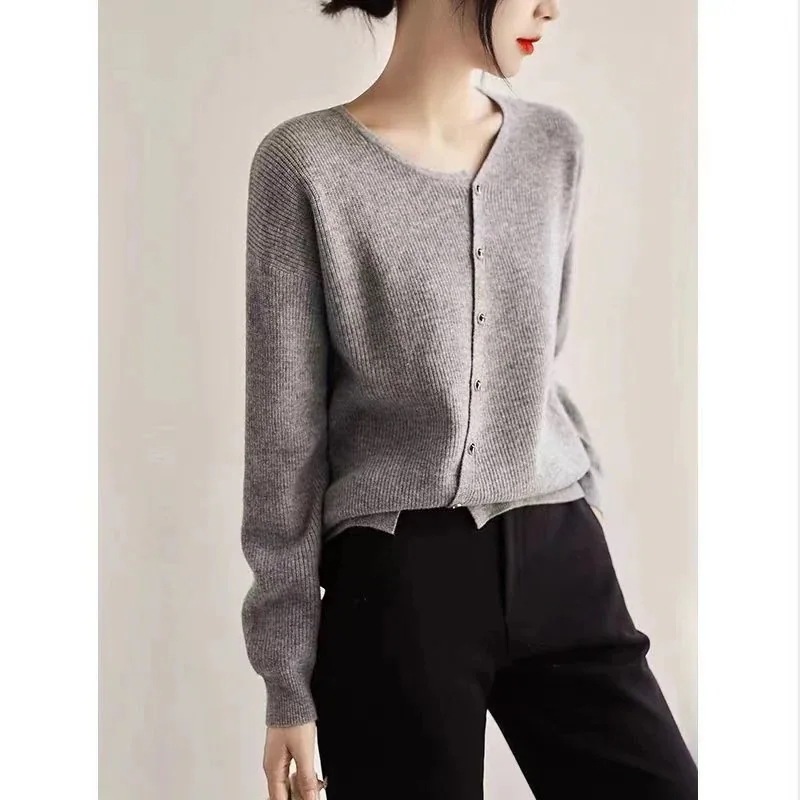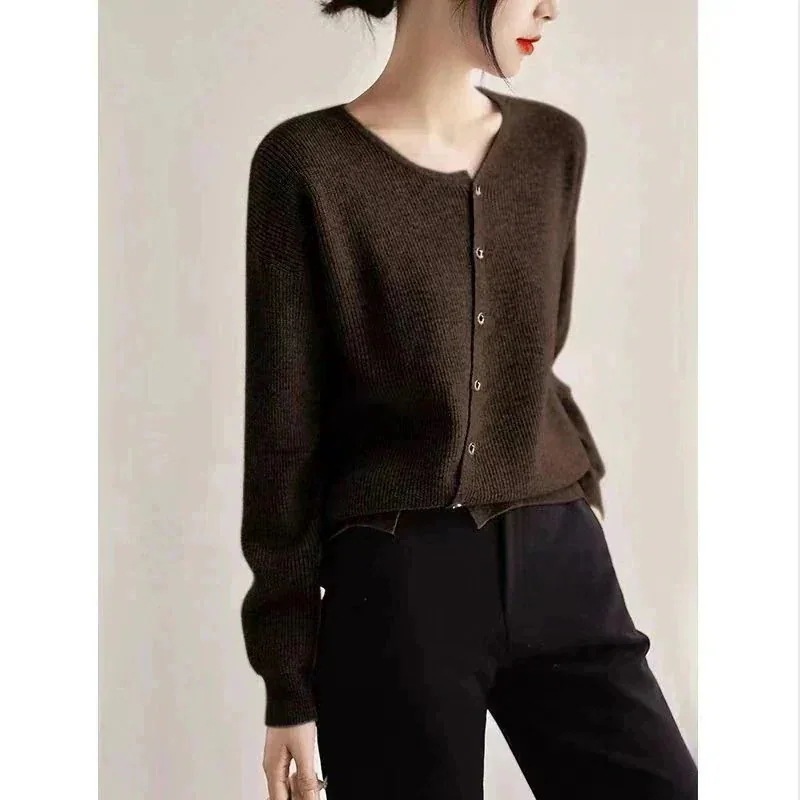ベーシックニットジェントルスタイル秋服デザイン感ニッチデザインゆったり減齢シングルブレストウールニットカーディガン